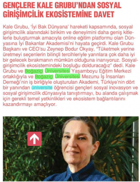 Gençlere Kale Grubu'ndan sosyal girişimcilik ekosistemine davet