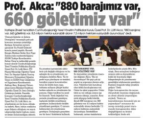 Prof. Akca: "880 barajımız, 660 göletimiz var"