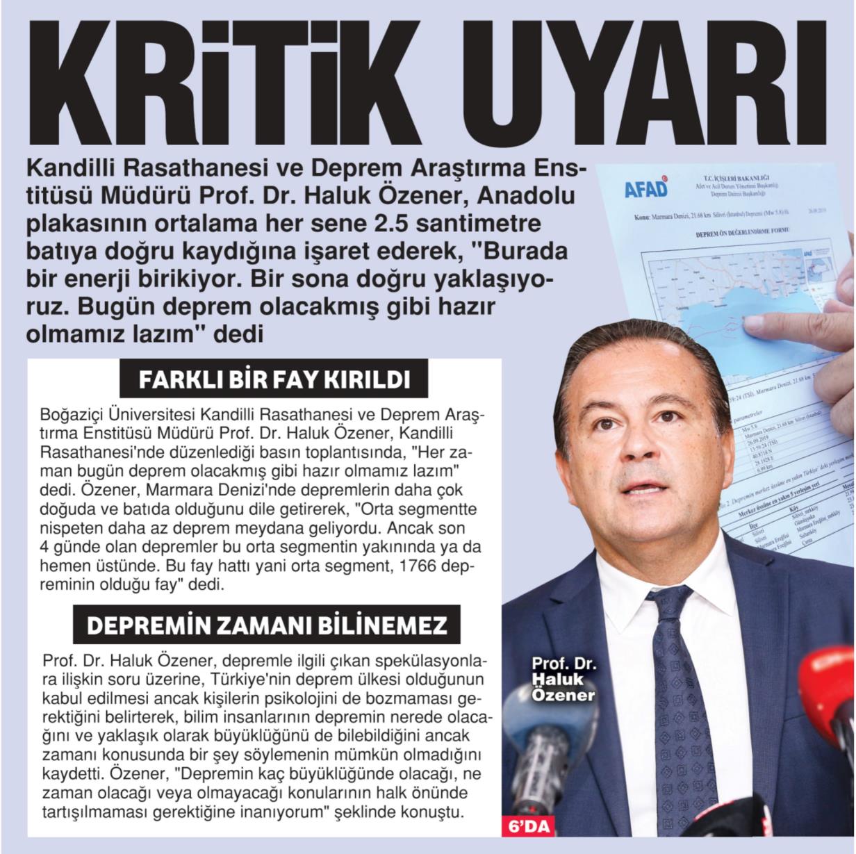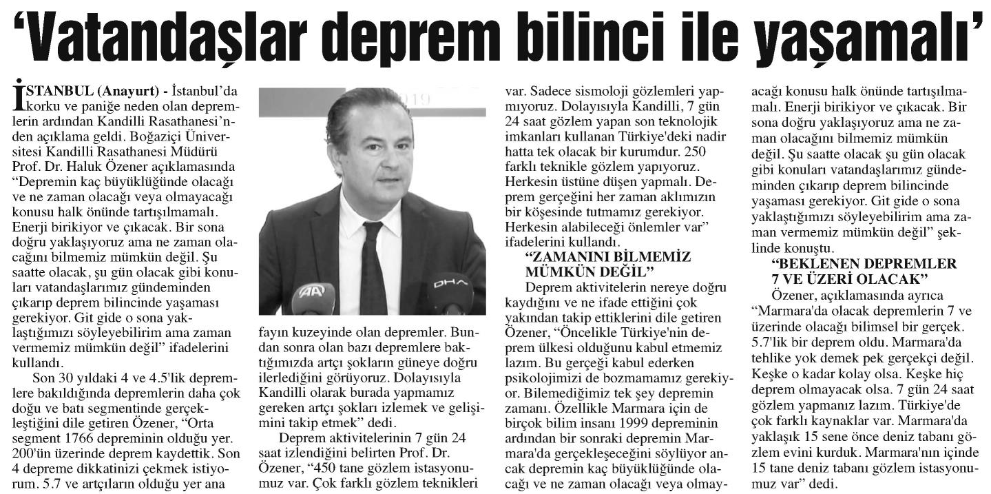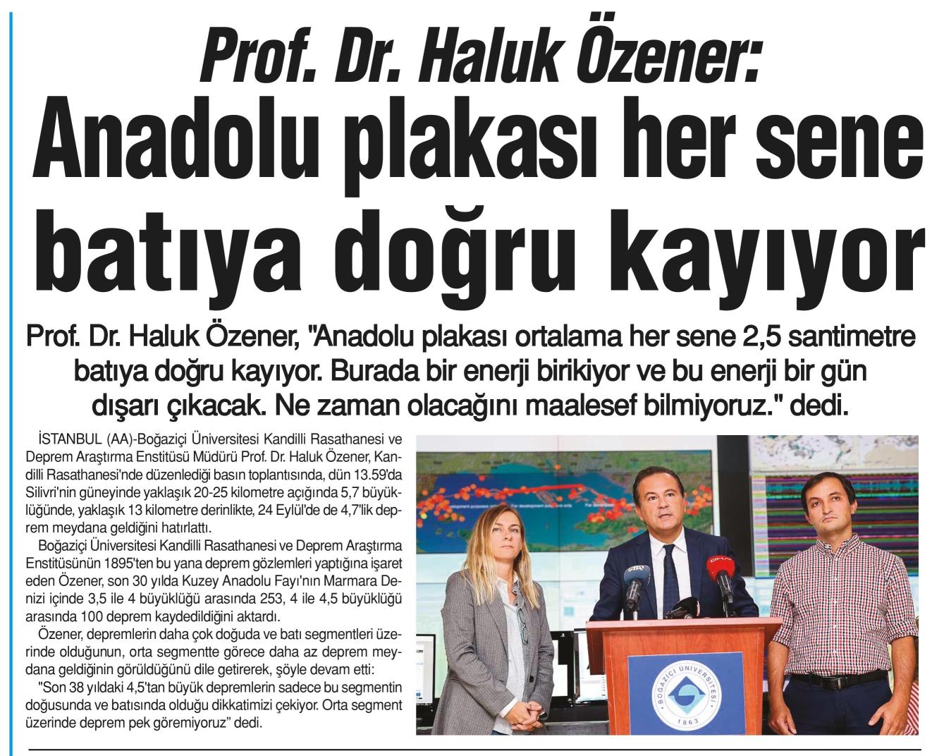 Prof. Dr. Özener: "Anadolu plakası her sene 2,5 santimetre batıya doğru kayıyor"