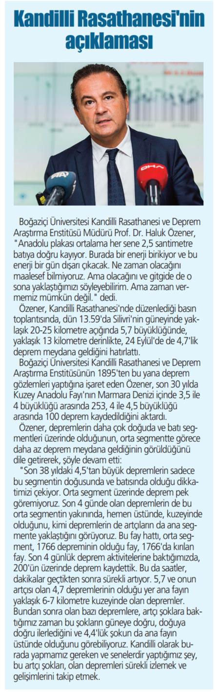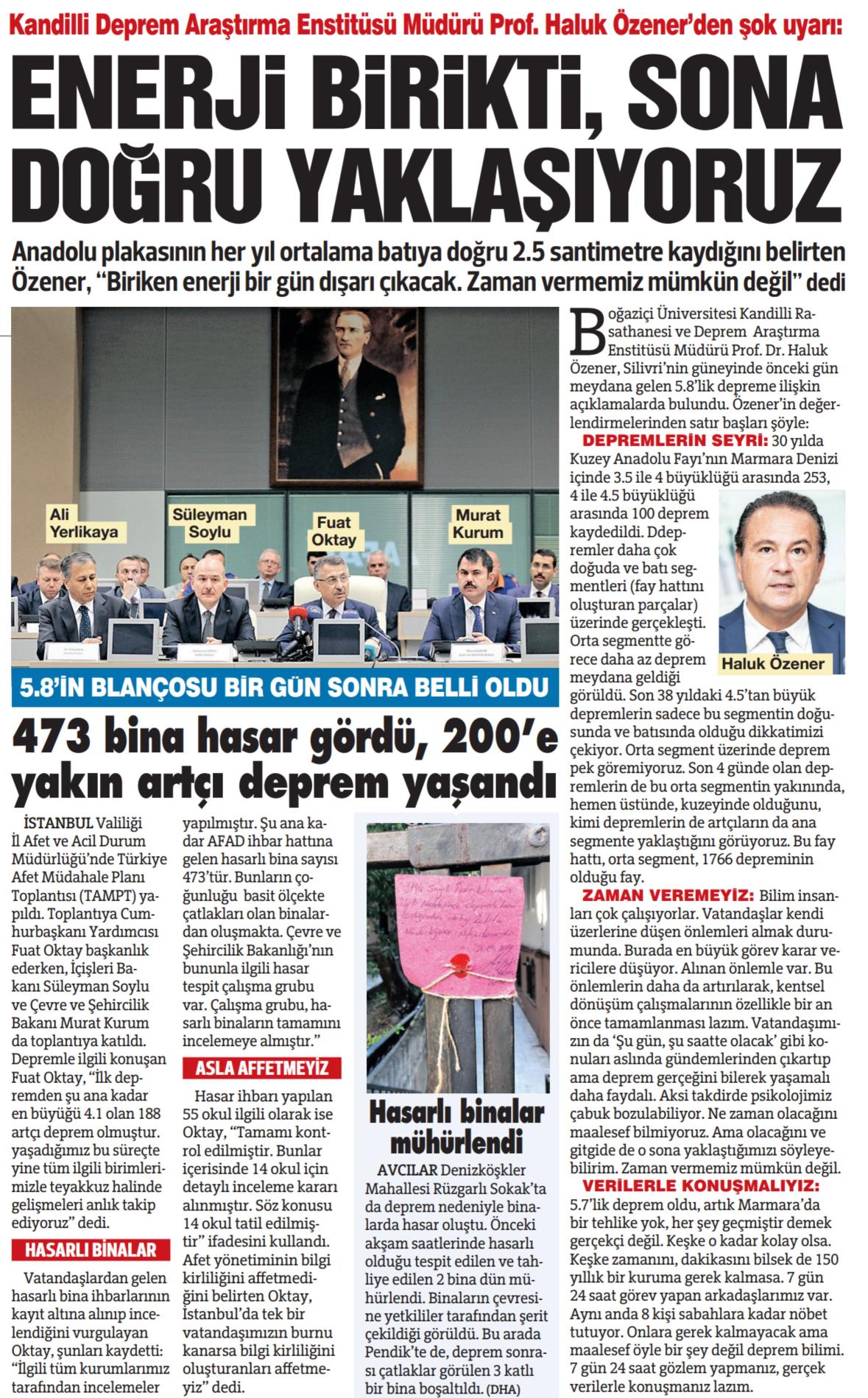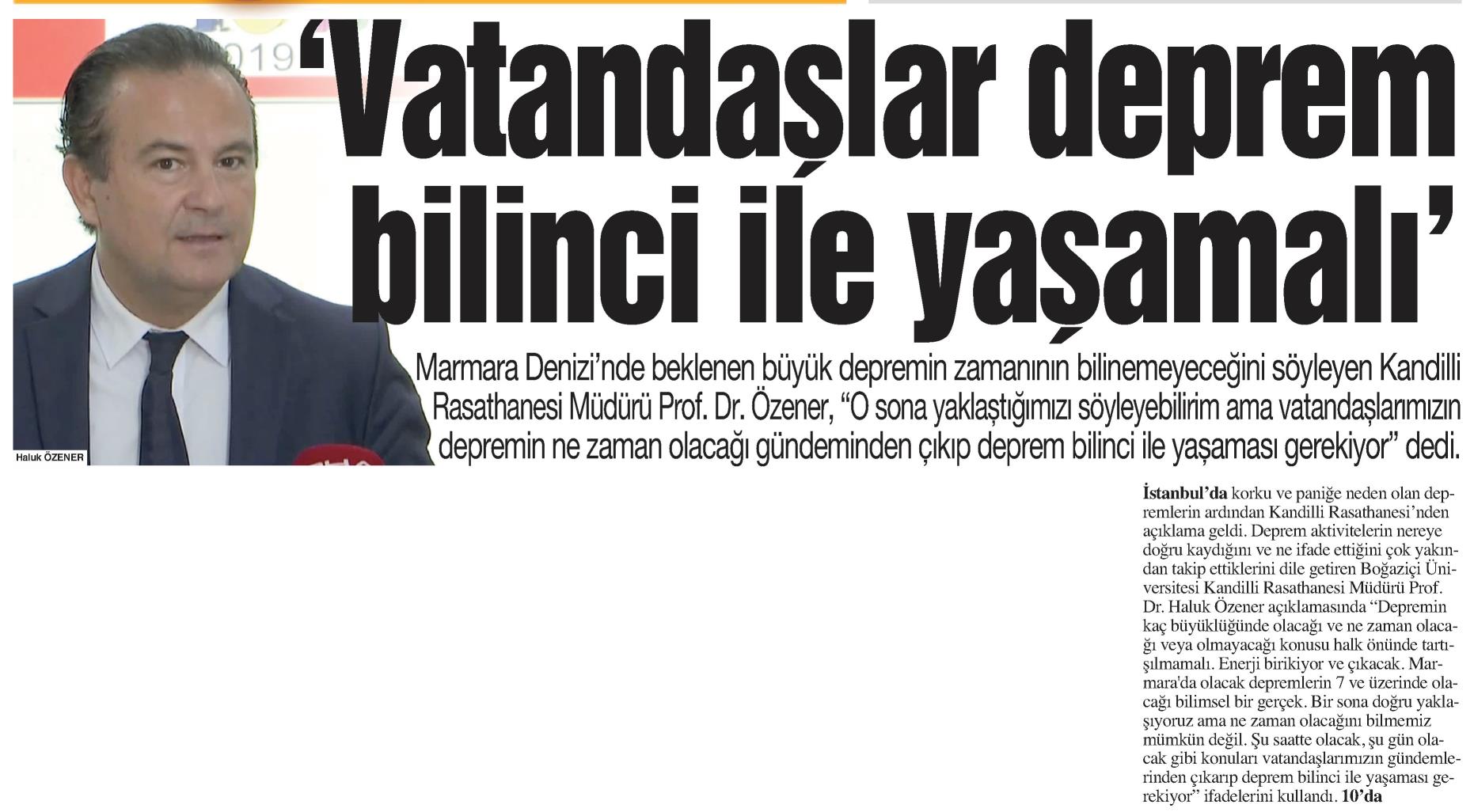 Prof. Dr. Özener: "Anadolu plakası her sene 2,5 santimetre batıya doğru kayıyor"