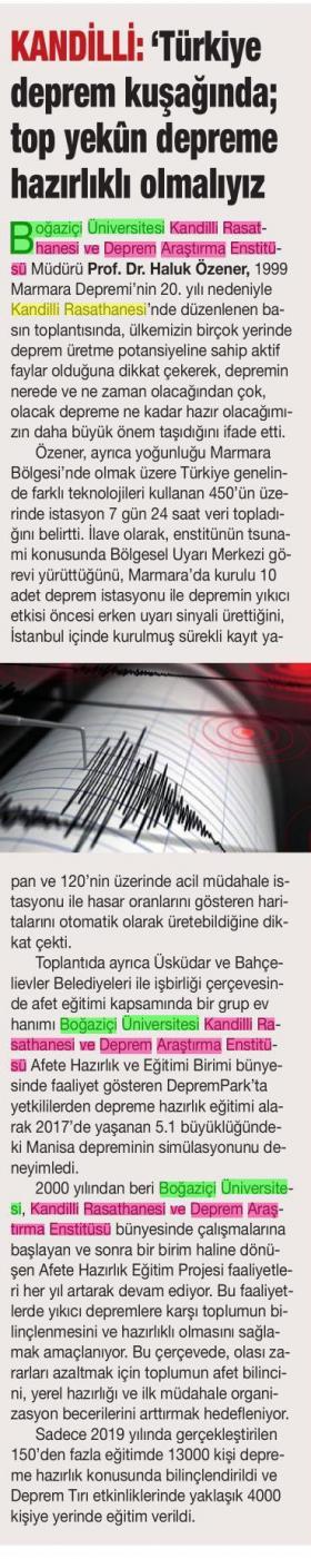 Kandilli: Türkiye deprem kuşağında; top yekûn depreme hazırlıklı olmalıyız