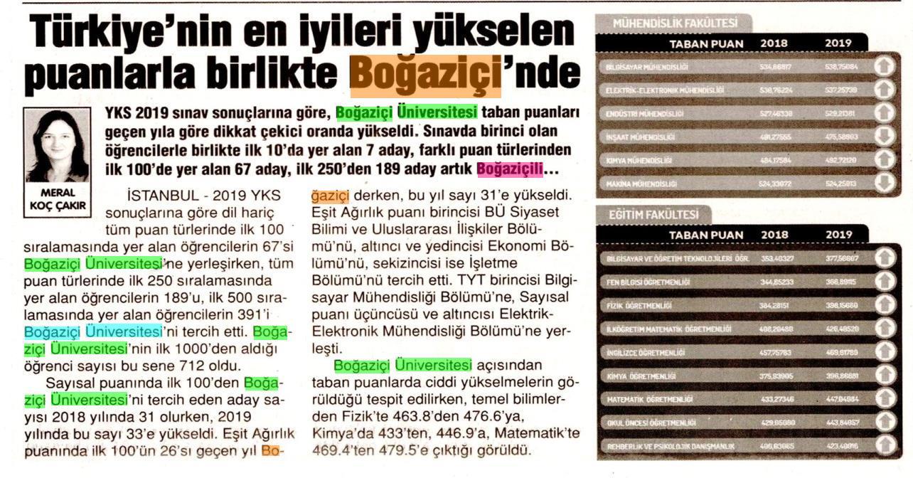 İlk 100'ün 67'si Boğaziçi Üniversitesi'ne