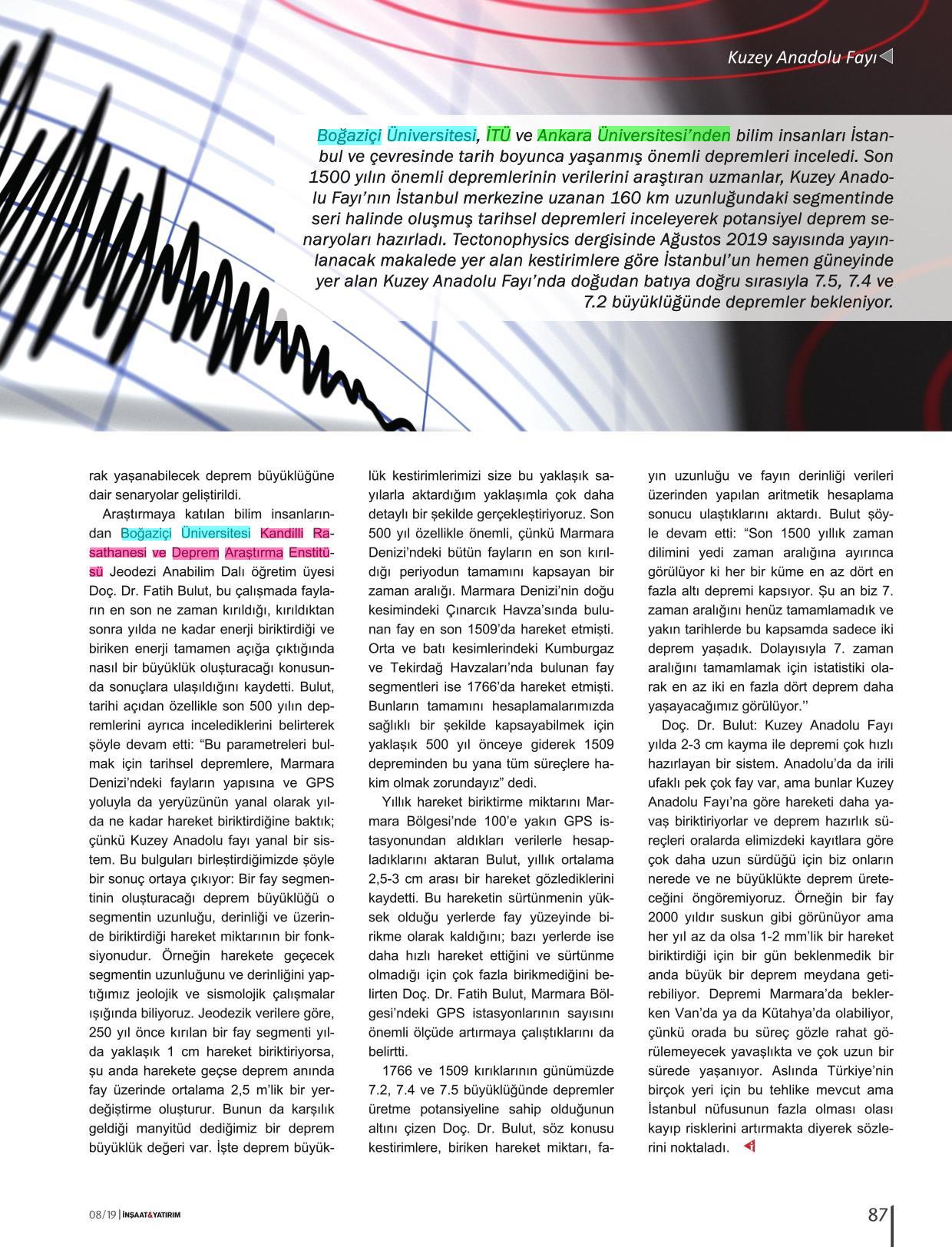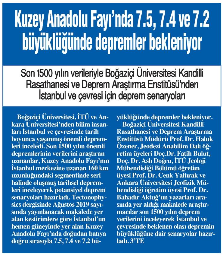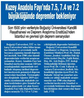 Kuzey Anadolu Fayı'nda 7.5, 7.4 ve 7.2 büyüklüğünde depremler bekleniyor