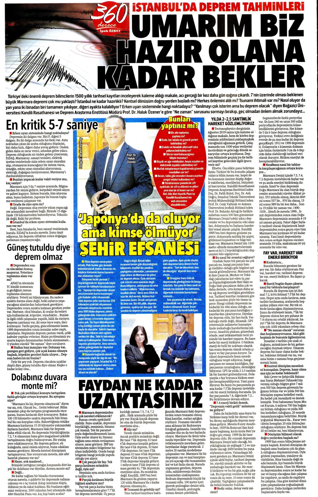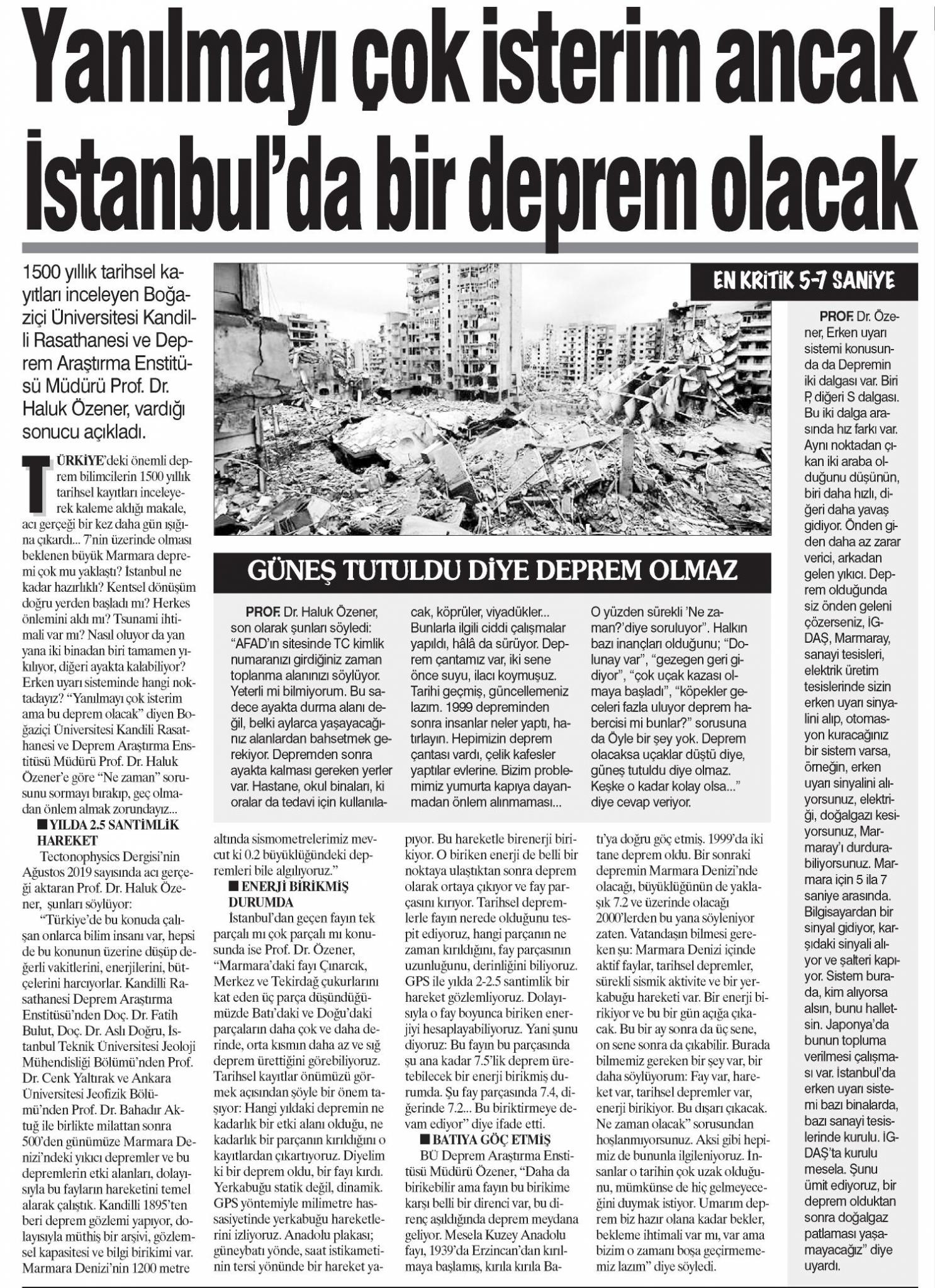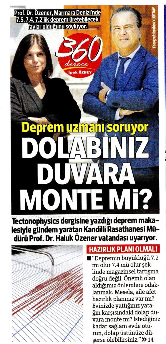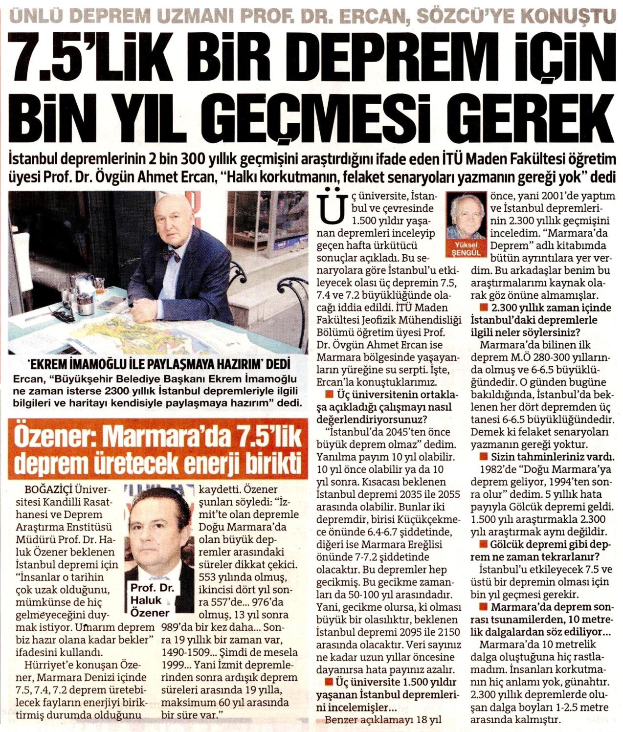 Özener: Marmara'da 7.5'lik deprem üretecek enerji birikti