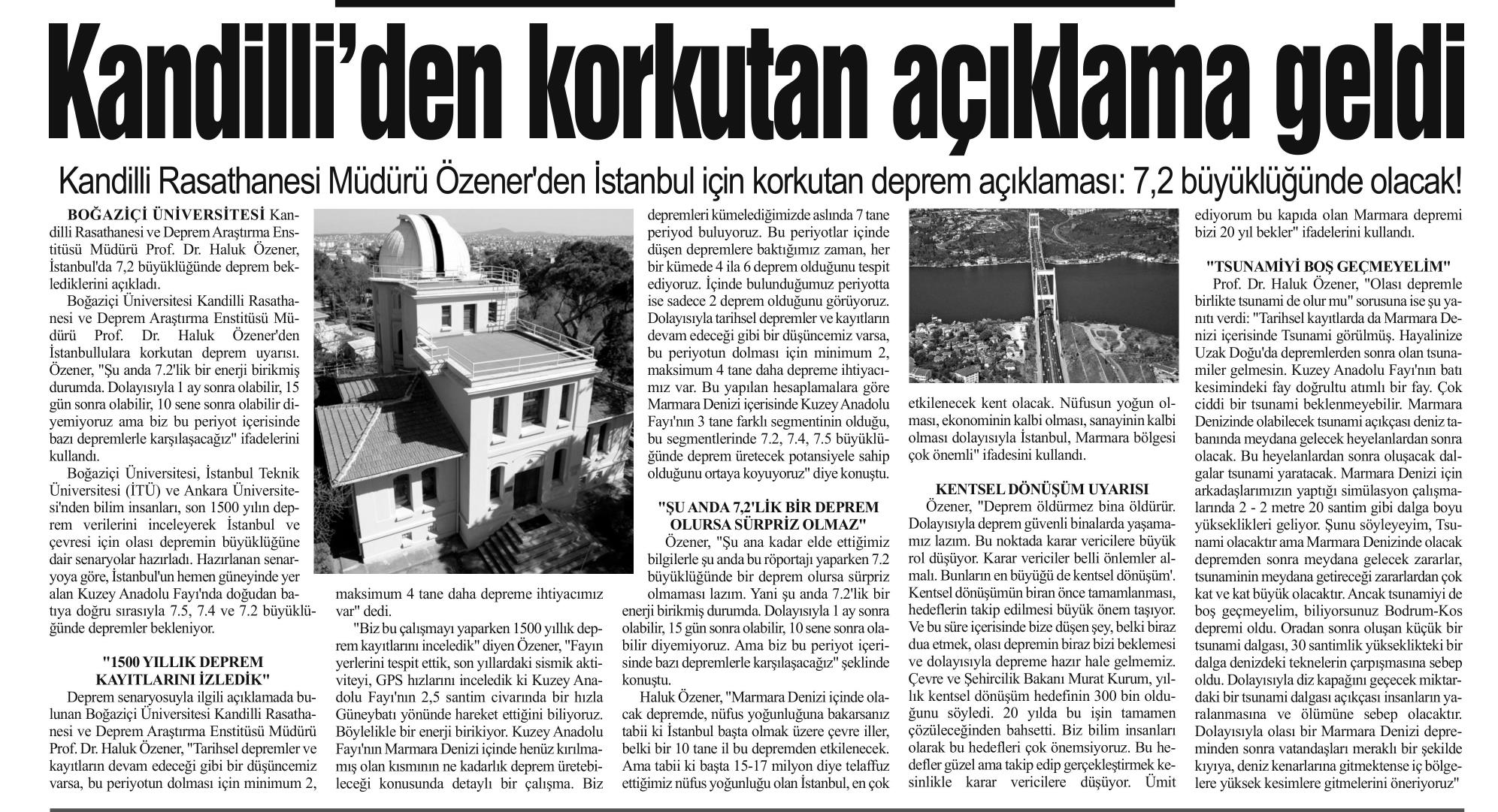Kandilli'den korkutan açıklama geldi