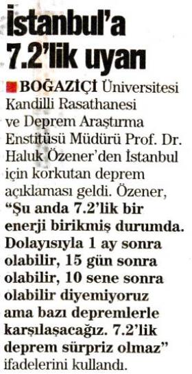 İstanbul'a 7.2'lik uyarı