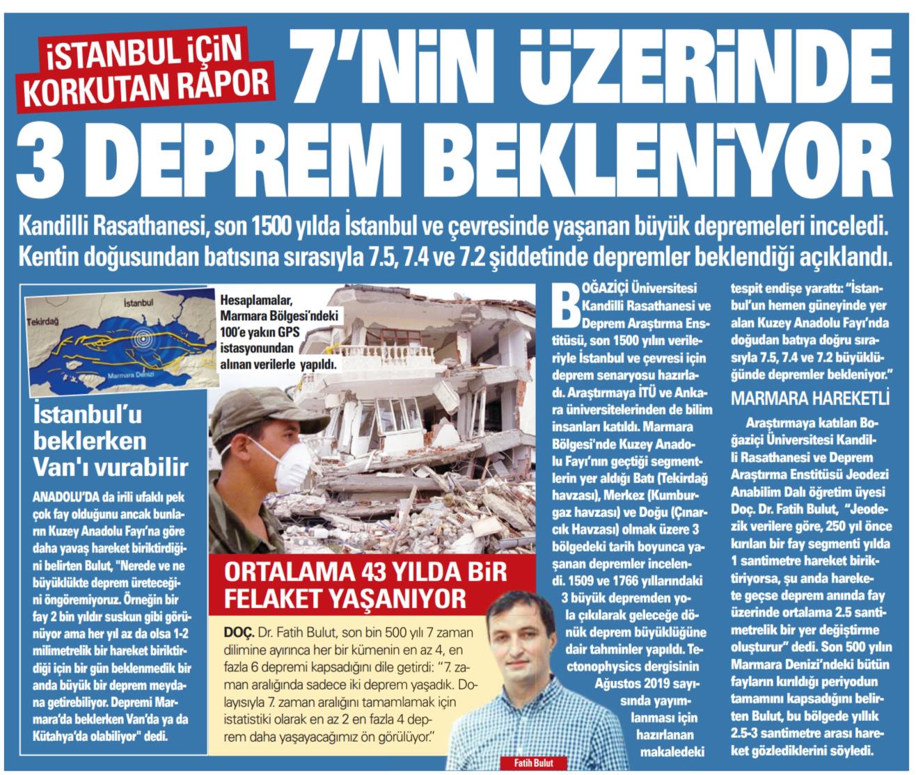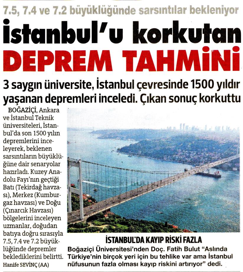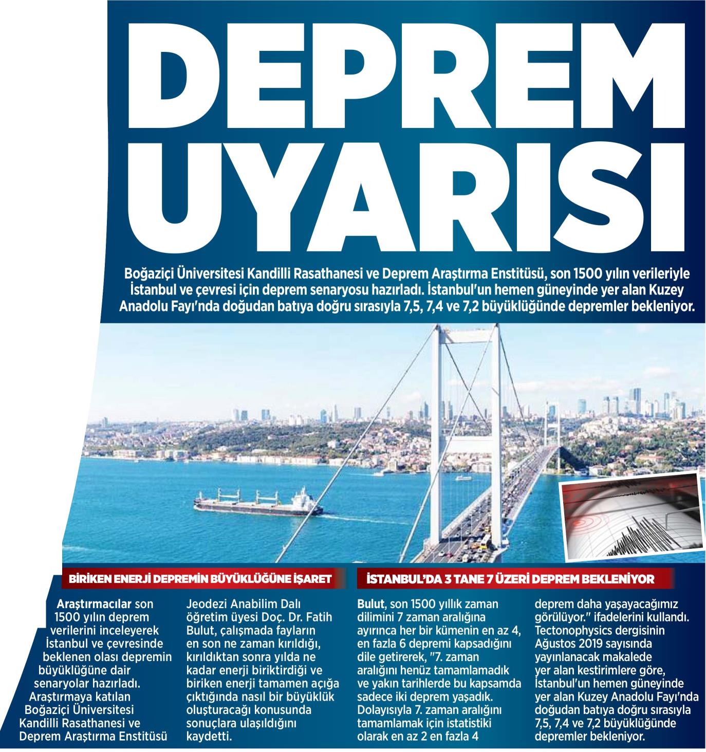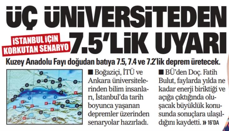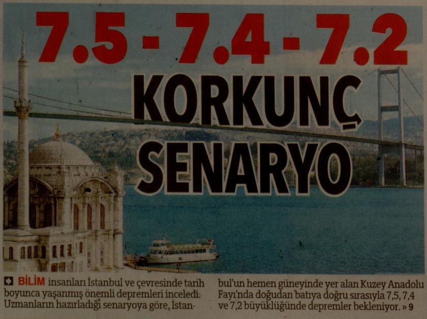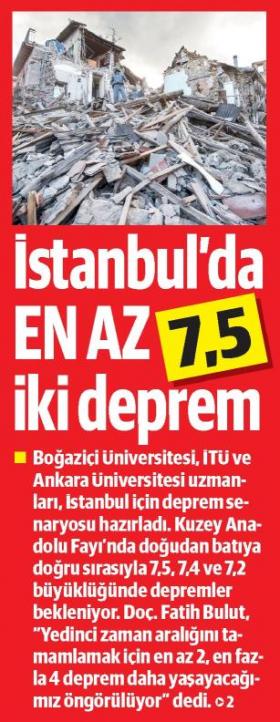İstanbul'da 7.5, 7.4 ve 7.2 deprem bekleniyor
