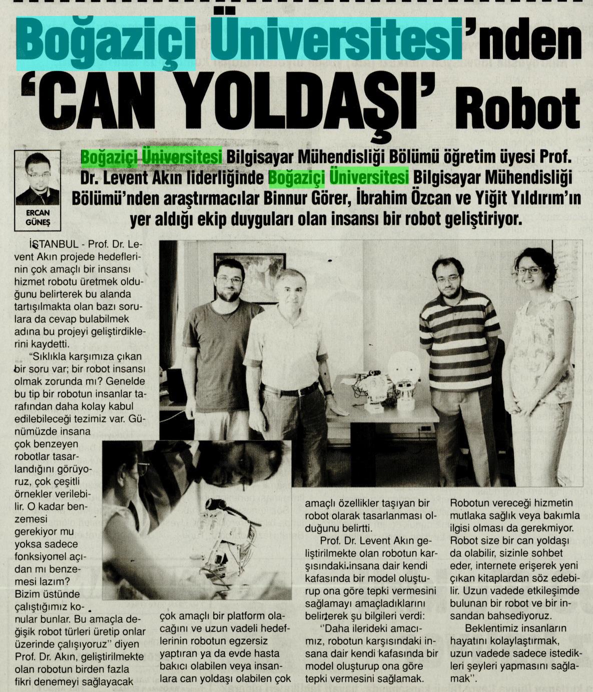 Boğaziçi Üniversitesinden can yoldaşı robot