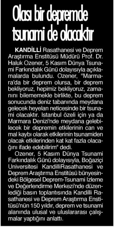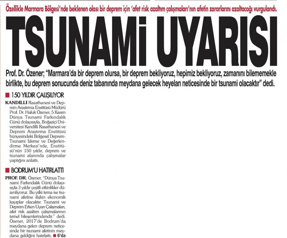 Kandilli'den Tsunami Uyarısı
