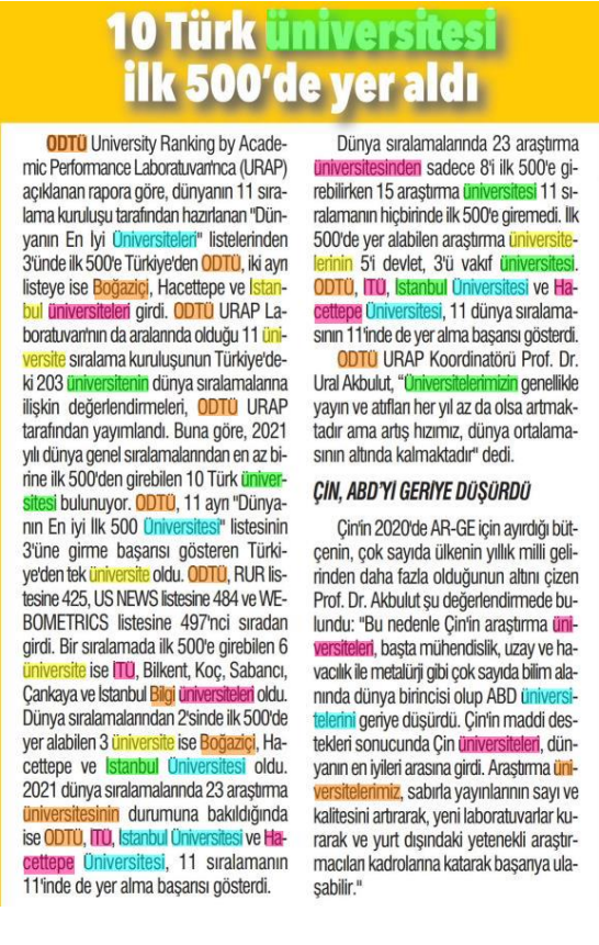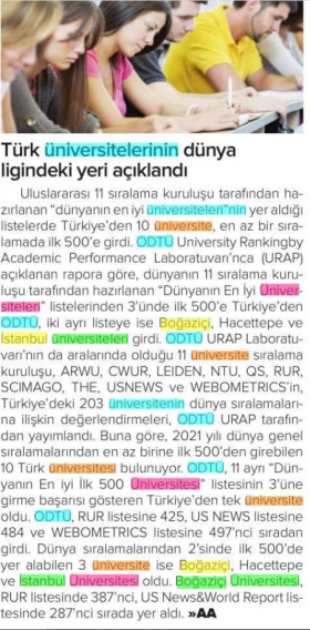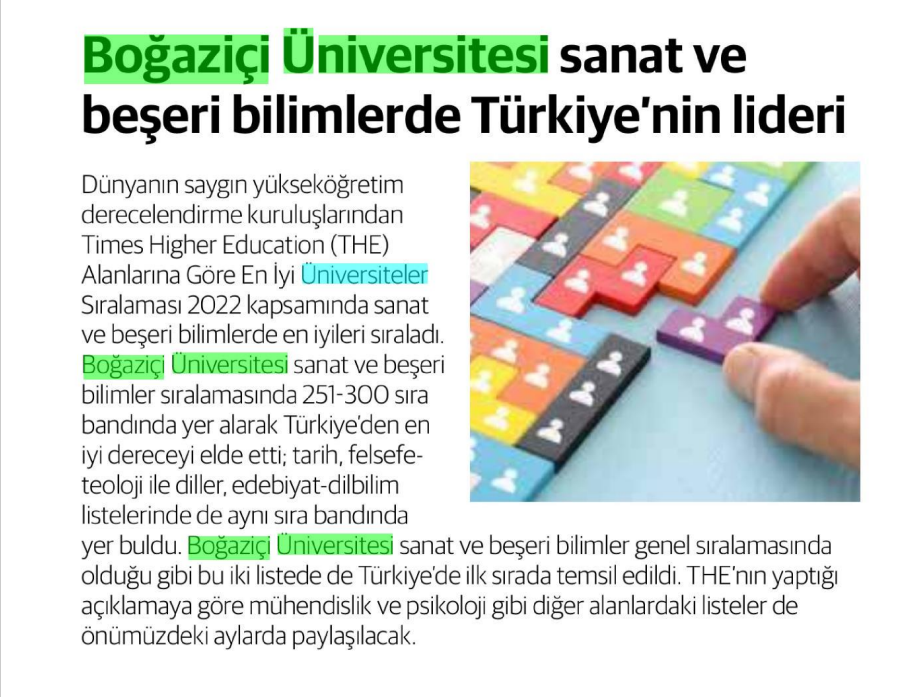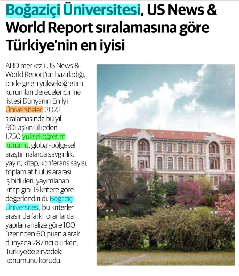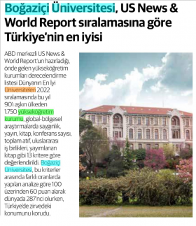 Boğaziçi Üniversitesi, US News & World Report sıralamasına göre Türkiye'nin en iyisi