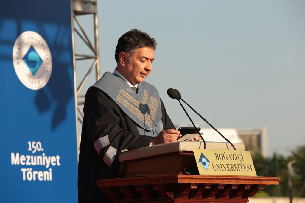 Boğaziçi Üniversitesi Rektörü Prof. Dr. Mehmed Özkan ise mezunlara ‘’Üniversitemizin kapısından içeri girdiğiniz andan itibaren bir birey olarak değerli olduğunuzu hissettiniz. İnancınız, diliniz, cinsiyetiniz, ırkınız veya yaşam tarzınız ne olursa olsun siz bu üniversitenin birer değeri oldunuz. Boğaziçi’nin akademik ve evrensel ilkelerini içselleştirerek bu kurumla değerinize değer katarak Boğaziçili oldunuz’’ sözleriyle hitap ederek mezuniyetlerinden ötürü kutladı.