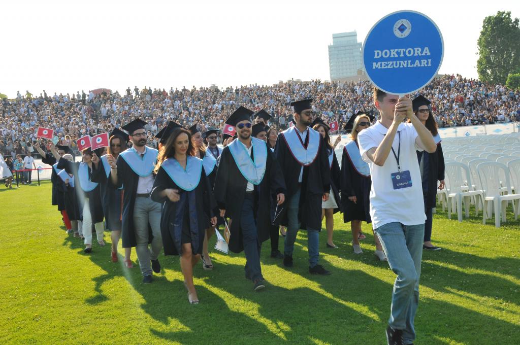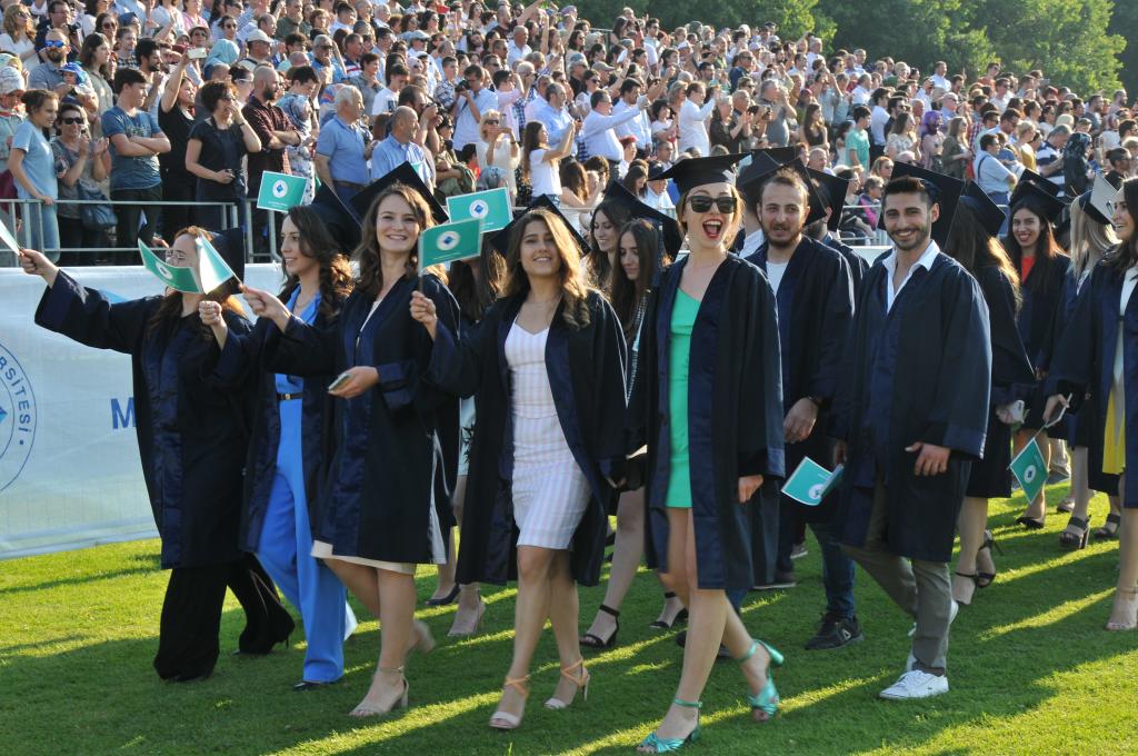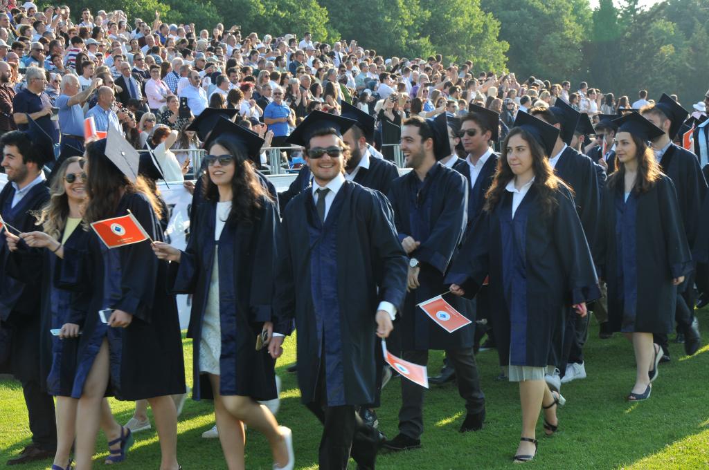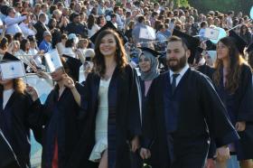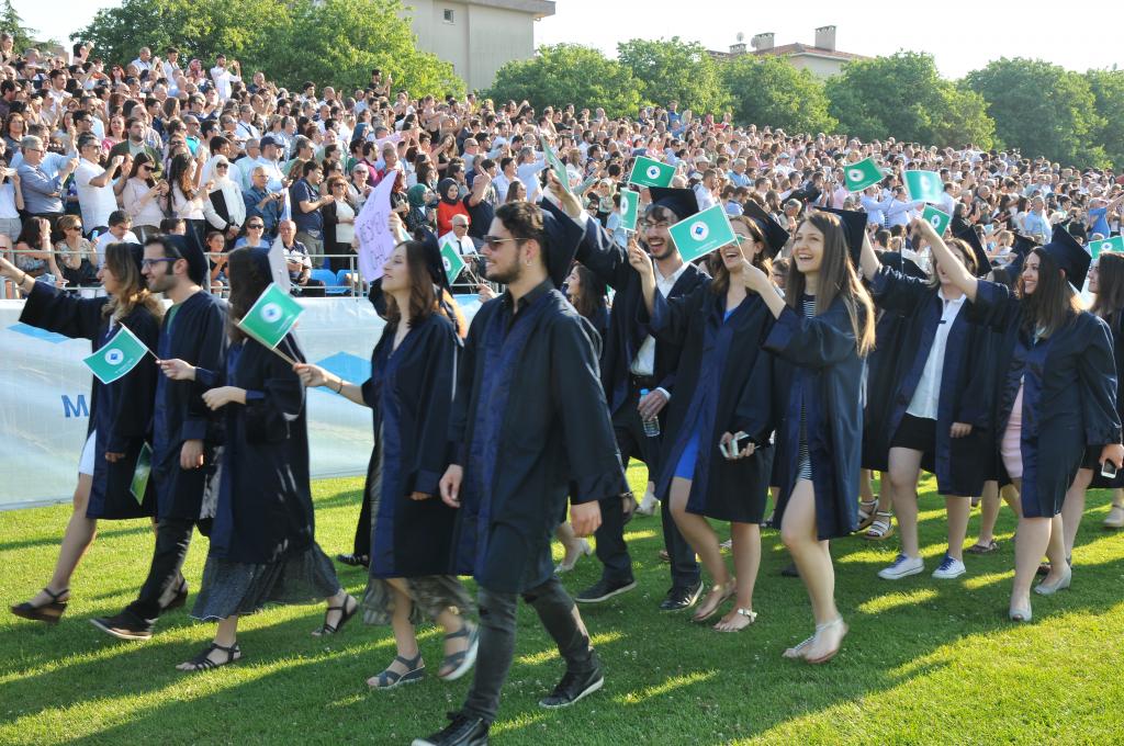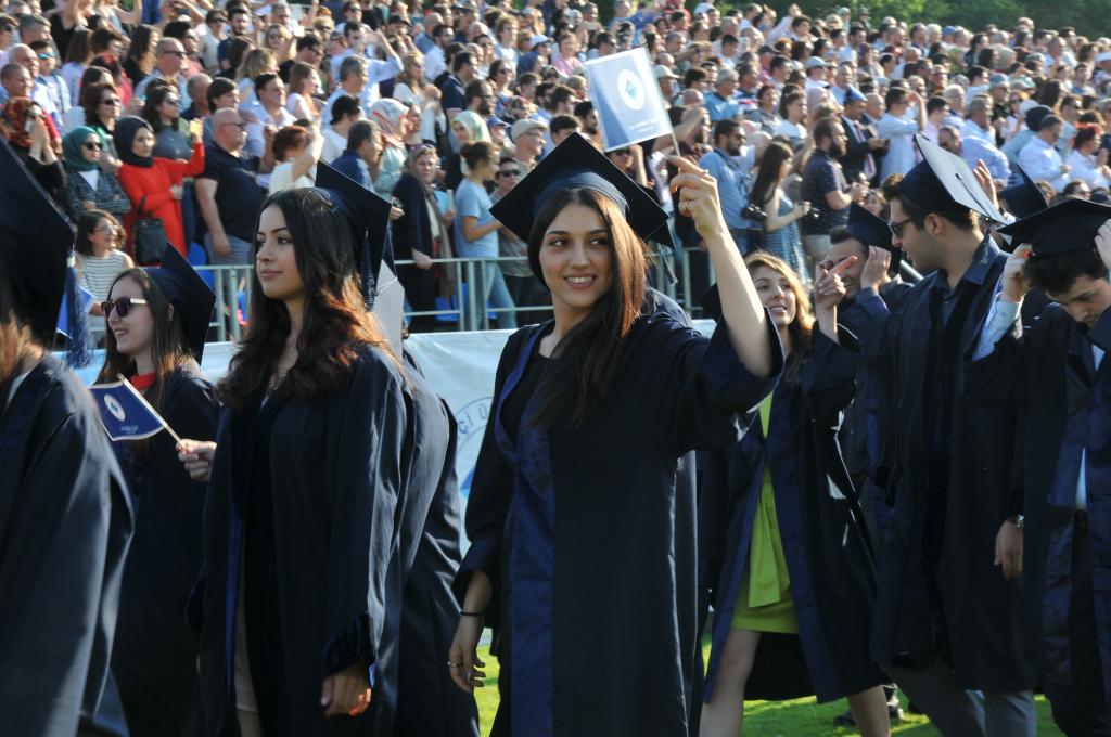 Mezuniyet töreni öğrencilerin kep atması ve kutlamalarıyla son buldu.