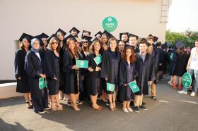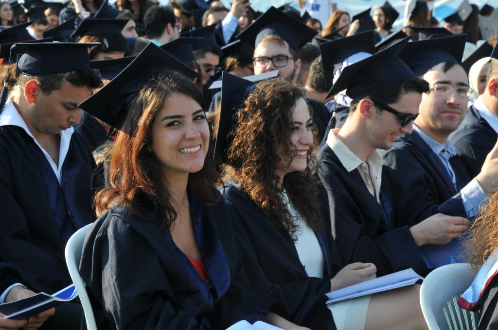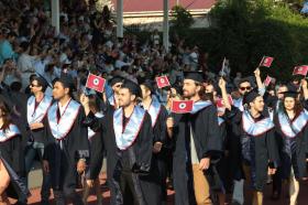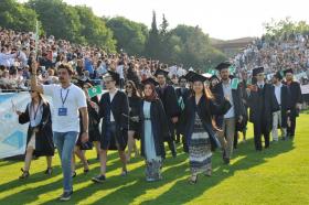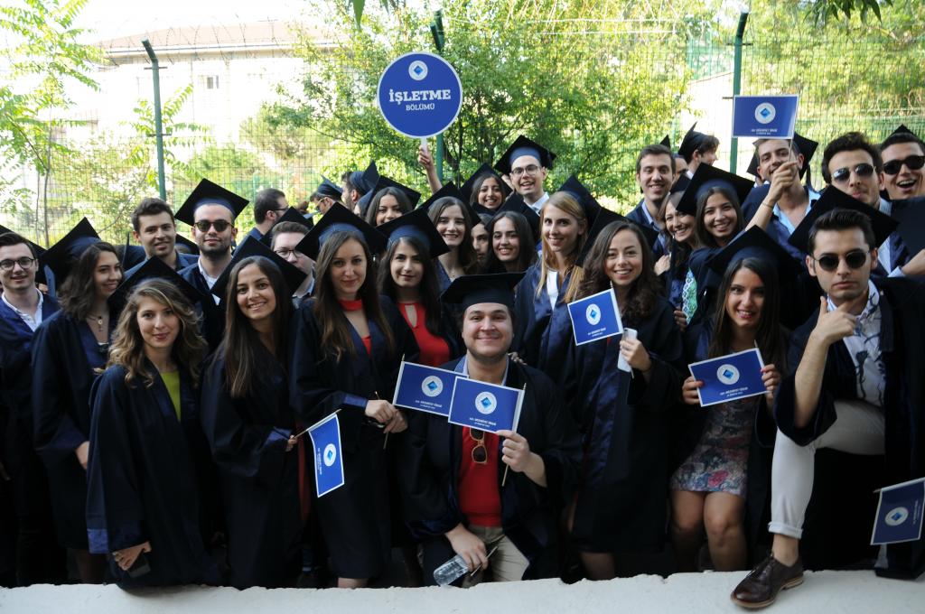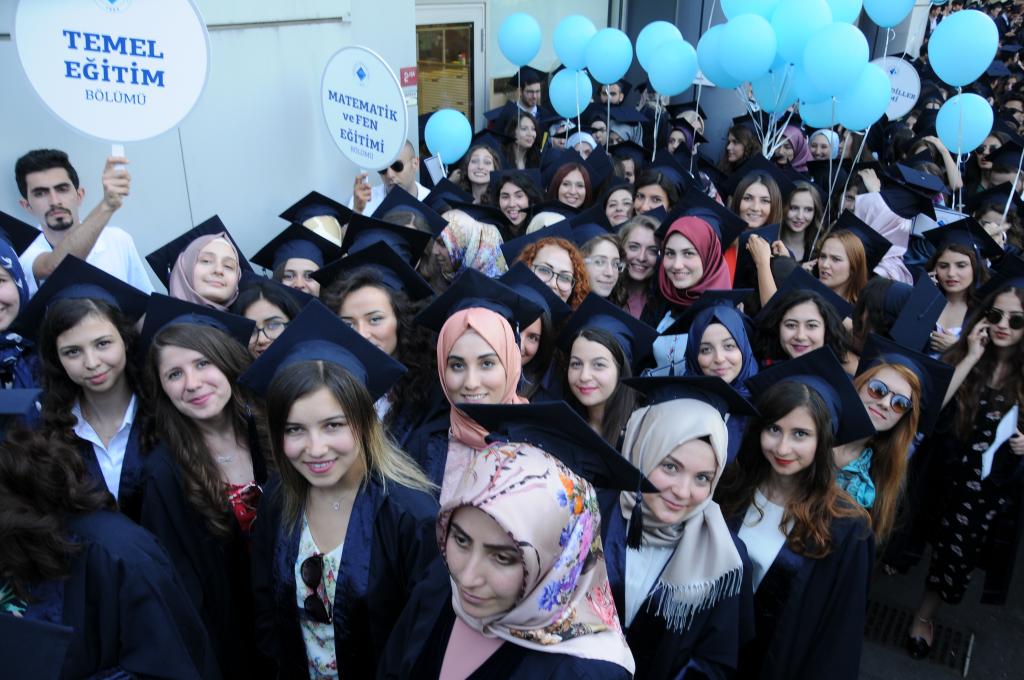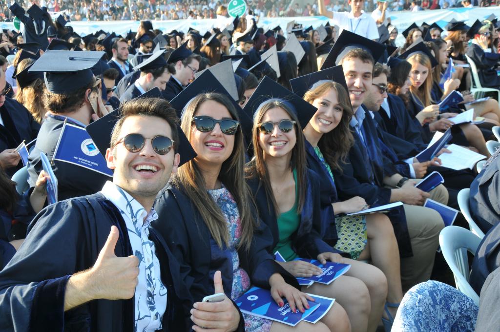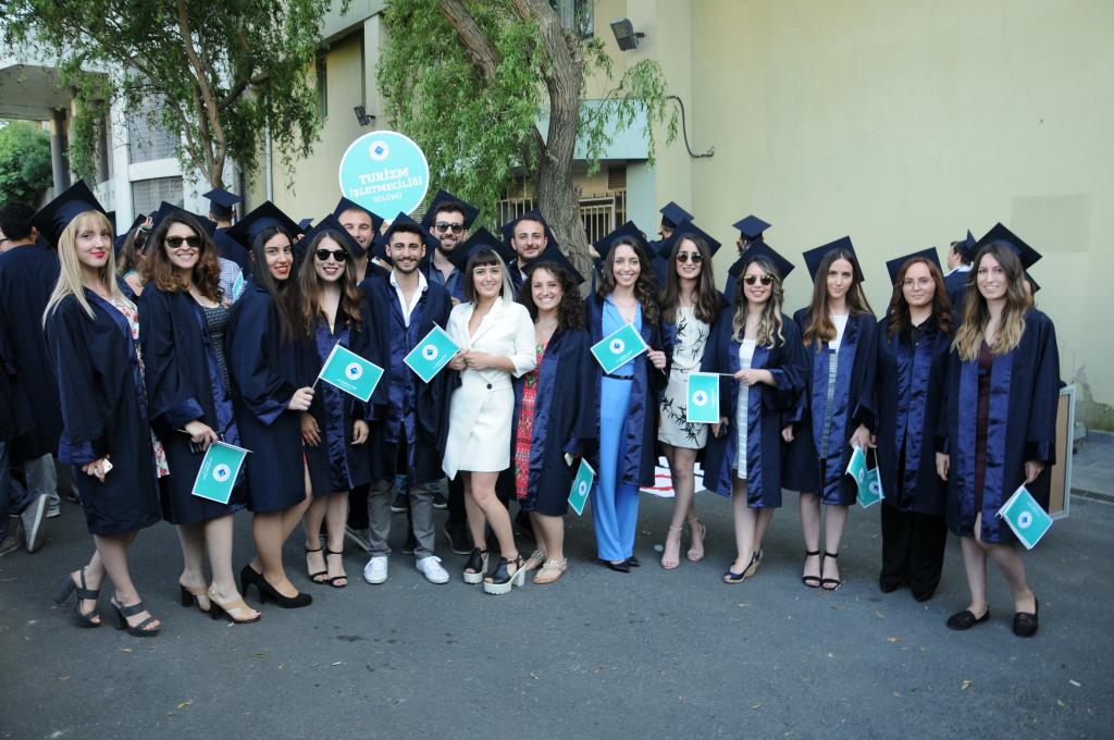 Mezuniyet töreni öğrencilerin kep atması ve kutlamalarıyla son buldu.