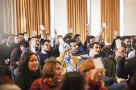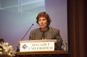 Eğitim Fakültesi Dekanı Prof. Dr. Emine Erktin ise eğitim sistemindeki sorunlara değinerek Boğaziçi’nin ‘mükemmelliği koruyan, geleneğini bilen ve yeniliklere açık, saygı ve hoşgörü ortamına sahip bir üniversite’ olduğunu söyleyerek, var olan sorunlara rağmen sorgulayan ve akıl yürütebilen insanlar yetiştirmeye çalıştığını kaydetti. 1974 yılında kurulan Eğitim Şubesiyle bugünkü Eğitim Fakültesi’nin temellerinin atıldığını aktaran Erktin, özgür iradeyi ve insan onurunu koruyan öğretmenler yetiştirmeyi amaçladıklarını vurguladı.