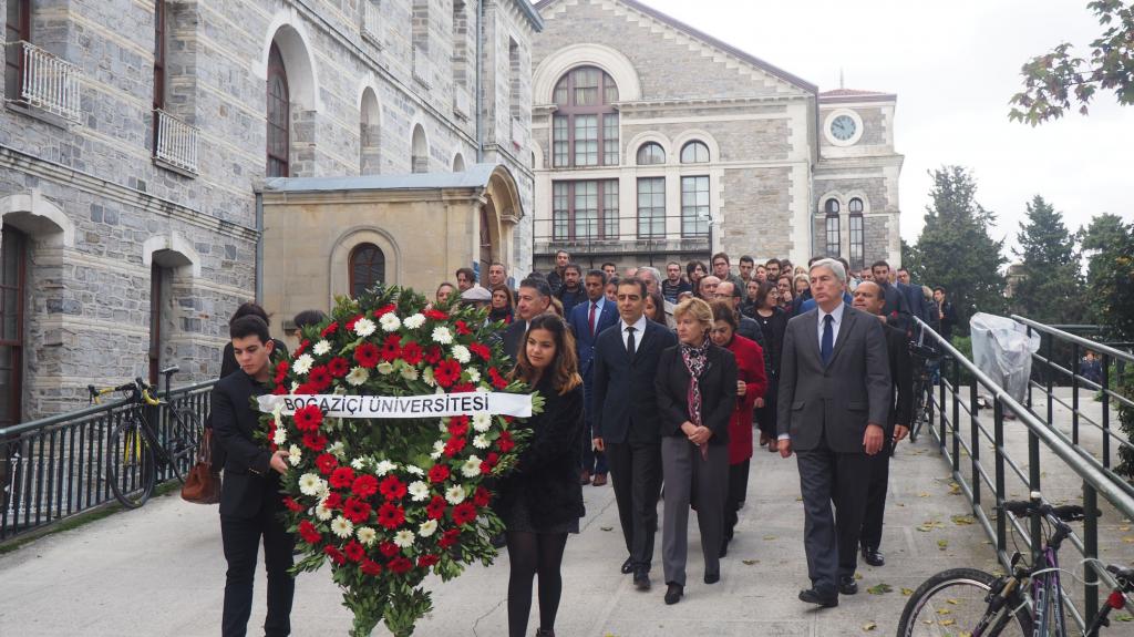 Boğaziçi Üniversitesi Rektörü Prof. Dr. Mehmed Özkan, öğretim üyeleri, öğrenciler ve üniversite çalışanlarının katıldıkları anma töreni Boğaziçi Üniversitesi Atatürk İlkeleri ve Inkilap Tarihi Enstitüsü Direktörü Prof. Dr. Asım Karaömerlioğlu’nun Zafer Toprak’ı takdimi ile başladı. Karaömerlioğlu, sunuş konuşmasında Atatürk’ün aradan bunca yıl geçmesine rağmen ülkenin en kıymetli birleştirici değeri olduğunu vurguladı.