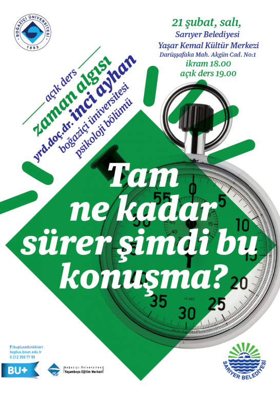 İnci Ayhan’ın vereceği “Zaman Algısı” semineri ise 21 Şubat’ta gerçekleştirilecek. Seminer, zamanı nasıl algıladığımızı, bu algıyı oluşturan biyolojik ve psikolojik faktörleri ele alarak zamana dair hepimizin deneyimlediği mutluluk, stres gibi durumları da konu edinecek.