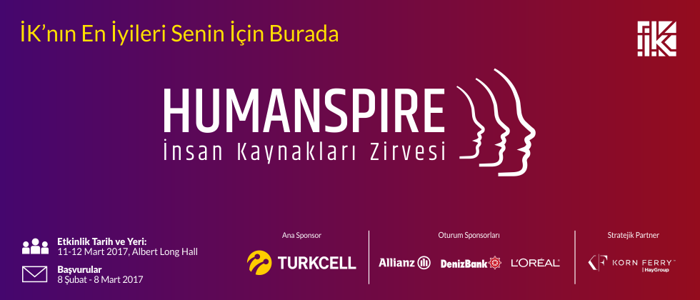 Korn Ferry International danışmanlığında, Turkcell ana sponsorluğunda düzenlenen zirve İK’da kariyer hedefleyen üniversite öğrencilerine ve yeni mezunlara sesleniyor. Profesyonel İK’cıların da verim alacağı, İK ile ilgili akıllardaki tüm soruları cevaplamayı hedefleyen Humanspire’da A’dan Z’ye İnsan Kaynakları konuşulacak. İK’nın fonksiyonları ve İK’da trend konular farklı sektör ve farklı şirketlerden alanında uzman,25 başarılı isim tarafından işlenecek.