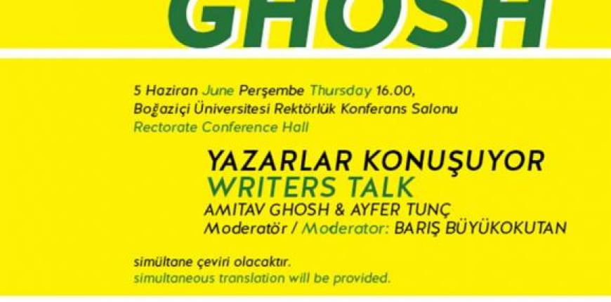 Kalküta Kromozomu ve Sırça Saray gibi kitaplarıyla uluslararası arenada "En Çok Satanlar" listesinde bir numara olan ve birçok önemli ödül kazanan Ghosh ile Ayfer Tunç 5 Haziran Perşembe, saat 16:00’da Rektörlük Konferans Salonu’nda açık sohbet gerçekleştirecek.
