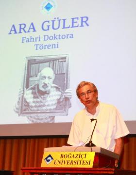 Boğaziçi Üniversitesi Rektörü Prof. Dr. Gülay Barbarosoğlu’nun ve Eğitim Fakültesi Dekanı Prof. Dr. Emine Erktin’in yaptığı açılış konuşmasının ardından, fahri doktora konuşmasını ve takdimini yazar Orhan Pamuk yaptı. Fahri doktora takdimi sonrasında ise Aydın Karlıbel ile bir piyano dinletisi sundu.