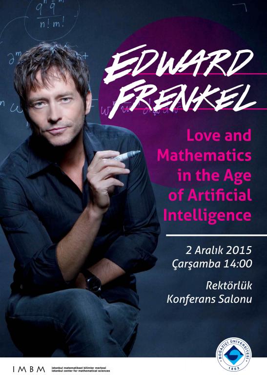 Prof. Frenkel’in, Boğaziçi Üniversitesi ve İstanbul Matematiksel Bilimler Merkezi’nin davetlisi olarak Boğaziçi Üniversitesi’nde gerçekleştireceği "Yapay Zekâ Çağında Aşk ve Matematik” konulu seminer, halka açık olarak Boğaziçi Üniversitesi Rektörlük Konferans Salonu‘nda gerçekleşecek.