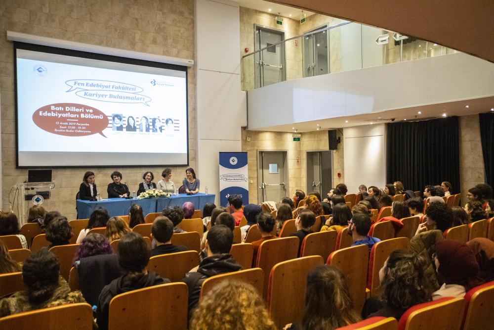Boğaziçi Üniversitesi öğrencilerinin beceri ve yetkinliklerini keşfetmeleri ve kariyer seçimlerini kendi amaçları doğrultusunda yapmaları için danışmanlık veren Boğaziçi Üniversitesi Kariyer Merkezi, bölümlere yönelik düzenlediği mezun buluşmalarıyla da öğrencilerin gelecekleri hakkında karar verme süreçlerinde destek oluyor. Bu kapsamda Batı Dilleri ve Edebiyatları Bölümüne yönelik 12 Aralık 2019 tarihinde gerçekleşen buluşmaya VMLY&R Genel Müdürü Arzu Ünal, Tekfen Kurumsal İletişim Direktörü Dori Kiss Kalafat, Metis Yayıncılık Sahibi Müge Gürsoy Sökmen ve İKSV Genel Müdür Yardımcısı Yeşim Gürer Oymak katıldı.