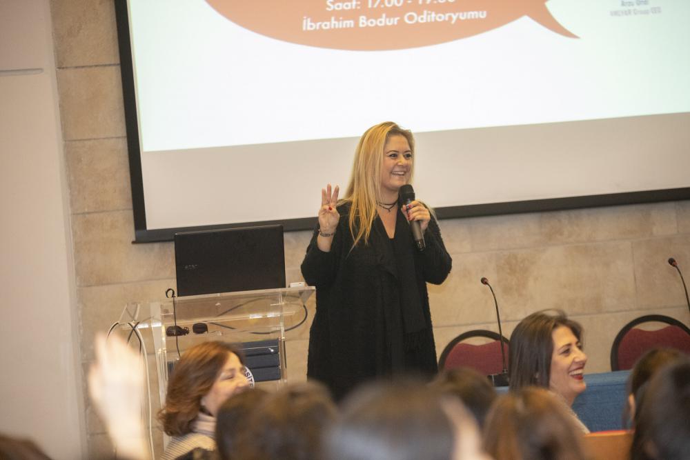 Öğrencilik yıllarında turist rehberliği de yaparak Anadolu’yu gezme fırsatı bulduğunu aktaran Arzu Ünal, yolculuklarında derslerden öğrendiklerinin çok faydasını gördüğünü ekledi. Mezuniyetinin ardından önce Protector and Gamble Türkiye’de, sonra da Young and Rubicam/Reklamevi’nde çalışan Ünal, 1993 yılında ajans ikinci başkanı 2004 yılında ise ajans başkanı olma hikâyesini öğrencilerle paylaştı: “2003 yılında kendimi ajansı kurtarma görevinde bulduğumda liderliğin ne olduğunu bilmiyordum, ancak 1 yılda kâr yapan bir ajansa dönüştük. Kariyer biraz da başınıza gelenler, ama bence her Boğaziçili üniversitede kazandığı birikimi geri vermeli ki bu birikim çoğalsın.”