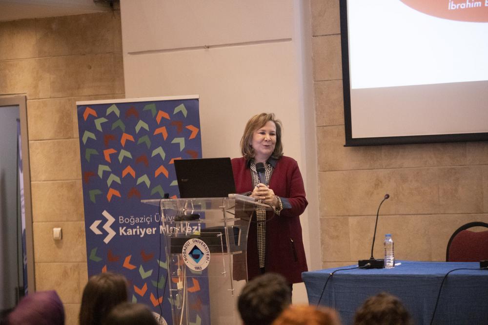 Boğaziçi Üniversitesi Makine Mühendisliği Bölümü 1983 yılı mezunu editör, çevirmen ve Metis Yayınları’nın kurucu ortağı Müge Gürsoy Sökmen ise yayıncılık alanında merak edilenleri cevaplamak için kariyer buluşmasındaydı. Metis Çeviri ve Defter dergilerinde yayın kurulu üyeliği yapmış olan ve ifade özgürlüğü alanında yıllardır önemli çalışmalara imza atan Sökmen, sözlerine “Hayat bir didişmedir. Çok çalışmak hiç bitmeyen bir şey, şu hayatta bildiğim tek şey sürdürülebilir hiçbir şeyin emeksiz elde edilemeyeceği,” ifadeleriyle başladı.