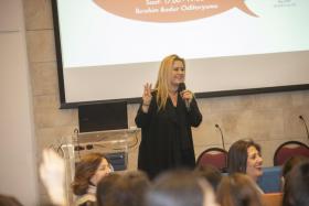 “Ne yapmak istemediğinizi bazen ne yapmak istediğinizden daha kolay anlayabilirsiniz, bu nedenle her fırsatı değerlendirin. Bazen bir yerde ne bulamayacağınızı anlamak daha önemlidir,” ifadeleriyle öğrencilere tavsiyeler veren Dori Kiss Kalafat, kariyer hayatındaki kısa süreli mutsuzlukların ilerlemenin bir parçası olduğunun altınız çizdi. Kurumsal iletişim yapmanın itibar bekçiliği yapmak olduğunu paylaşan Kalafat, bu alanda başarılı olmak için aynı anda farklı işlerle uğraşabilme, dünyadaki gelişmelerin farkında olma, insan, zaman, bütçe ve kriz yönetimini becerebilme gibi yetkinliklerin önemli olduğunu ekledi.