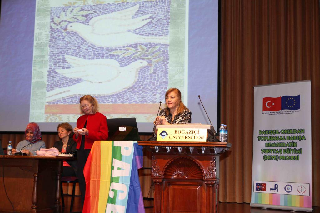 Barışçıl Okuldan Toplumsal Barışa Demokratik Yurttaş Eğitimi Projesi katılımcıları, 25 Mart Çarşamba günü Boğaziçi Üniversitesi’nde biraraya geldi. Nur Bekata Mardin, Maggie Pınar ve Aylin Vartanyan Dilaver’in katıldığı Eğitim Etkinlikleri bölümünde; izleyicileri odak noktasına alan çalışmalar yapıldı.