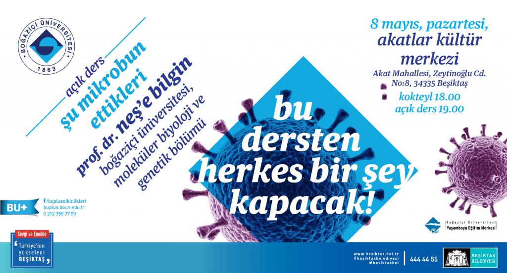 2017 Bahar döneminde Beşiktaş Belediyesi işbirliği ve Boğaziçi Üniversitesi Yaşamboyu Eğitim Merkezi (BÜYEM) desteği ve Yaşam Bilimleri ve Teknolojileri Uygulama ve Araştırma Merkezi’nin katkılarıyla sürdürülen “Bilimden Yaşama, Yaşamdan Bilime” dizisinde Prof. Neş’e Bilgin, probiyotikler, antibiyotik kullanımı, bir türlü çare bulunamayan dirençli hastane mikropları, çevre etkileri gibi kamuoyunda tartışılan soru başlıklarını ele aldı.