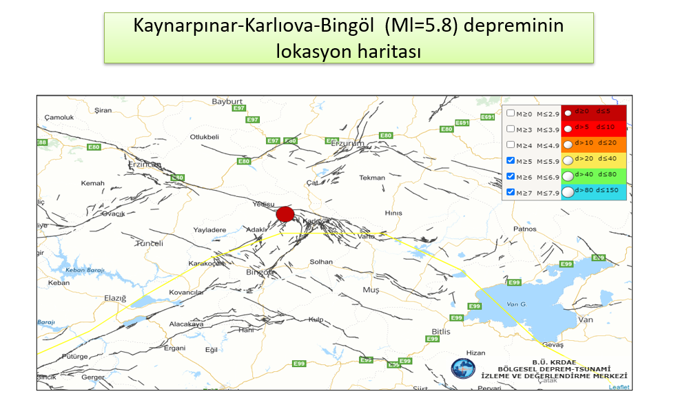 Boğaziçi Üniversitesi Kandilli Rasathanesi ve Deprem Araştırma Enstitüsü Müdürü Prof. Dr. Haluk Özener, tüm Türkiye’ye geçmiş olsun dileklerinde bulunarak depremin Bingöl’ün Karlıova ilçesinde bulunan Kaynarpınar merkezli olarak Türkiye saatiyle 17.24’te ve lokal olarak 5,8 büyüklüğünde meydana geldiğini belirtti. Bingöl depreminin sığ odaklı bir deprem olduğunu ve yaklaşık olarak 5 km derinlikte gerçekleştiğini ifade eden Prof. Dr. Haluk Özener, en büyükleri 4,6 ve 4,7 olmak üzere 50’den fazla artçı deprem oluştuğunun ve bu artçıların devam edeceğinin altını çizdi.