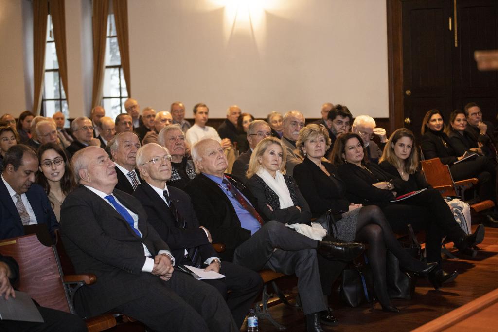 Prof. Dr. Üstün Ergüder’in aile üyelerinin konuşmalarının ardından Ergüder’in hayat hikâyesini ve Boğaziçi ile ilişkisini anlattığı bir video gösterimi gerçekleşti. 1948’de Robert Koleji’ne geldiği andan itibaren Boğaziçi’nin İstanbul’daki ailesi gibi olduğunu vurgulayan Ergüder, 1980’li yıllarda üniversitelerin karşılaştığı sıkıntılı dönemlerde kurumun özerkliğini korumak için sürdürdükleri mücadeleleri de misafirlerle paylaştı. Rektörlük seçimlerinin üniversite içinde yapılması geleneğini nasıl hayata geçirdiklerini de aktaran Ergüder, rektörlük görevi boyunca kurumun iyileştirilmesi ve araştırmaya ağırlık veren bir üniversite haline gelmesi için uğraştığını dile getirdi. “Rektörlük görevim boyunca çok stres altında olduğum zamanlar oldu, siperlerde savaşmanın ne demek olduğunu öğrendim ama aynı zamanda çok da sevdim” diyerek anılarını paylaşan Ergüder, görev süresinin sonunda rektörlüğü Prof. Dr. Sabih Tansal’a devretmesine rağmen kalbinin her zaman Boğaziçi’nde attığını vurguladı.
