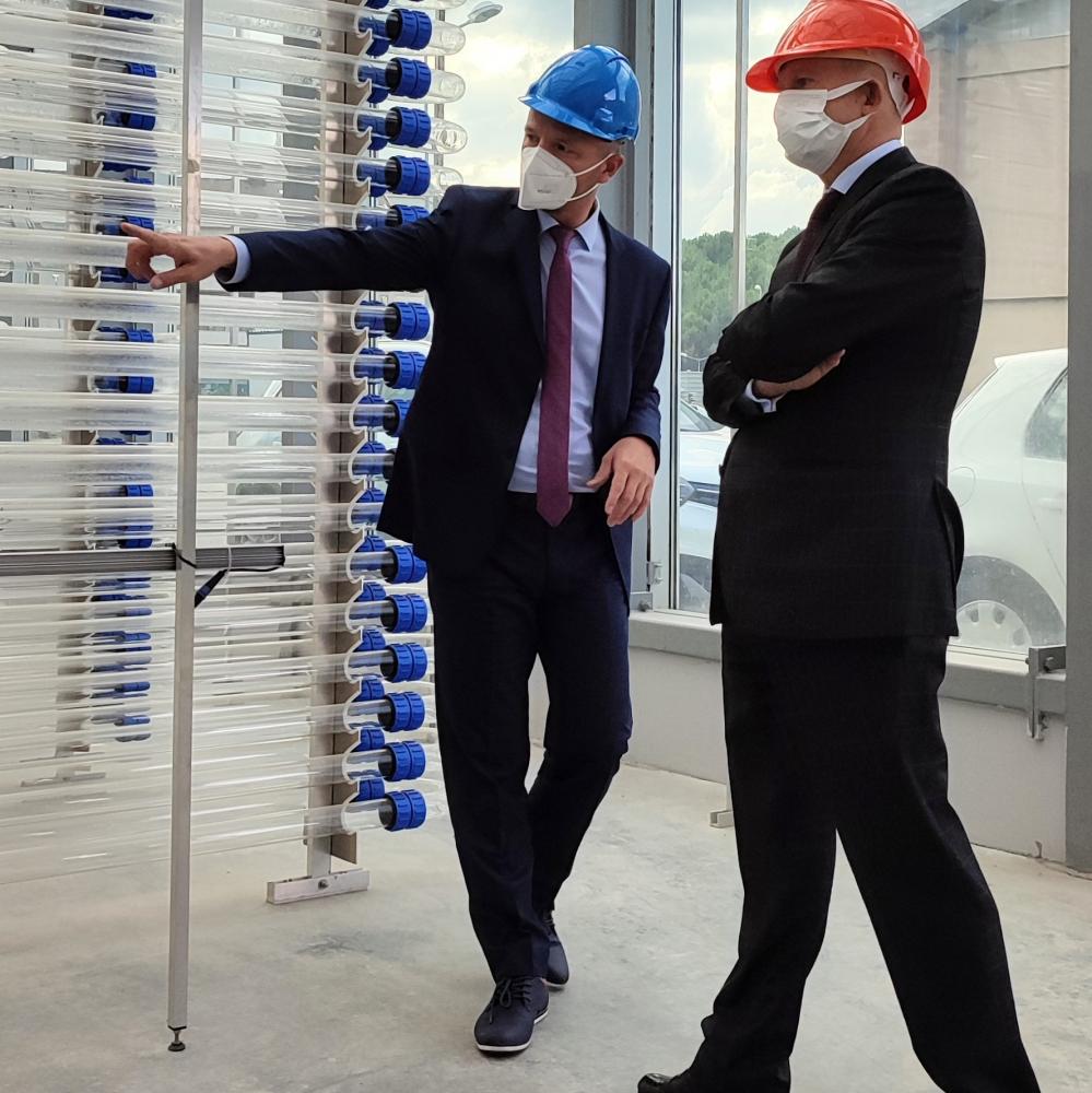 Boğaziçi Üniversitesi Çevre Bilimleri Enstitüsü Dr. Öğr. Üyesi Berat Haznedaroğlu, Avrupa’nın ilk karbon negatif biyorafinerisi olma özelliğine sahip tesiste yapılan yeni projeler hakkında Büyükelçi Chilcott’a bilgi verdi.