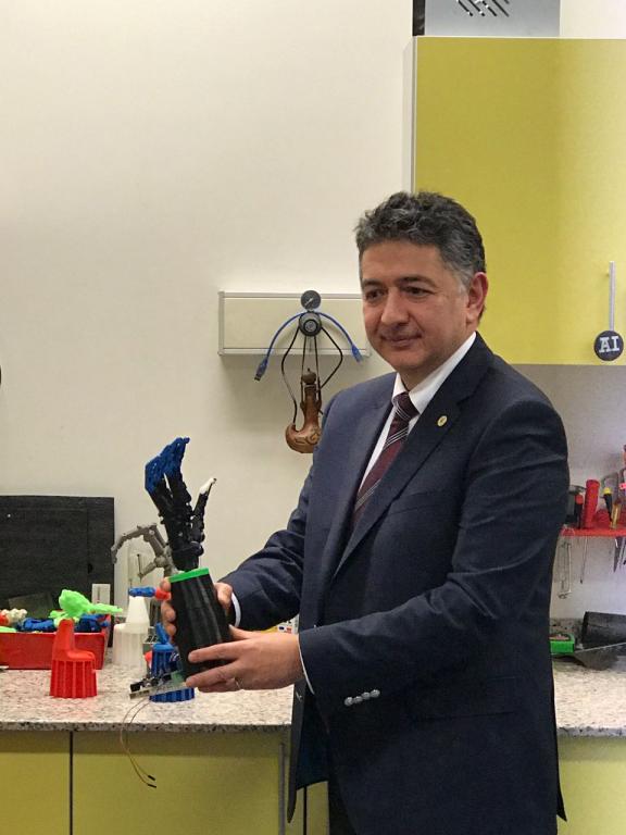 Prof. Dr. Mehmed Özkan, Protez El ve Robot El teknolojilerinin son yıllarda önemli bir araştırma- geliştirme alanı haline geldiğine dikkat çekerek, Boğaziçi Üniversitesi olarak Türkiye’de ilk defa tümüyle yerli kaynakları kullanarak insan anatomisinden esinlenen bir Protez El (Antropomorfik Hibrit Protez El) geliştirdiklerini belirtti.