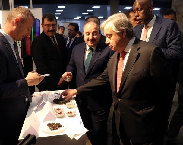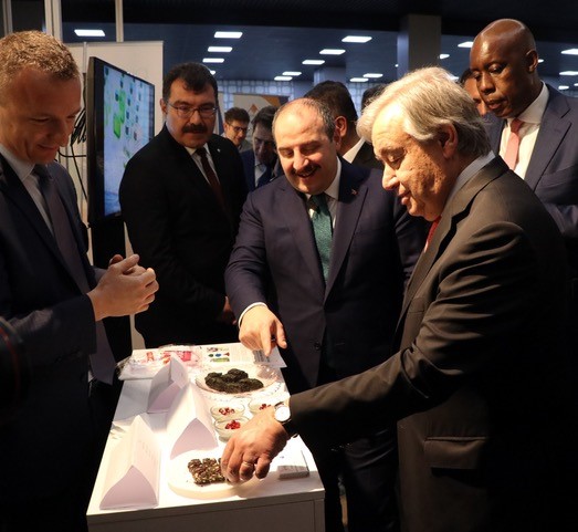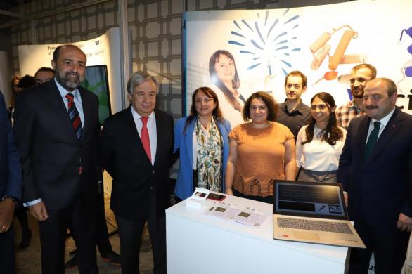 Birleşmiş Milletler (BM) Genel Sekreteri Antonio Guterres, Özören ve Haznedaroğlu’nun projeleri hakkında kendilerinden bilgi aldı. Guterres’e Sanayi ve Teknoloji Bakanı Mustafa Varank, Vali Hüseyin Aksoy, Türkiye'nin BM Daimi Temsilcisi Feridun Sinirlioğlu ve TÜBİTAK Başkanı Prof. Dr. Hasan Mandal da eşlik etti. Guterres, etkinlikte sergilenen projelerin gurur verici olduğunu belirterek henüz 11 ay önce kurulan Teknoloji Bankası’nın az gelişmiş ülkelerin yeni teknolojilere erişiminde destek anlamında şimdiden önemli bir rol üstlendiğini kaydetti.