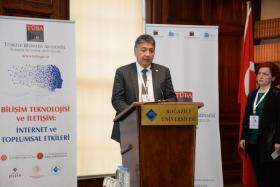 Çalıştayda söz alan TÜBA Başkanı Prof. Dr. Muzaffer Şeker ise multidisipliner bakışa gereksinim olduğunu belirterek ‘’ Bilişim teknolojikleri hayatımızın her alanını kuşatmış durumda ve kuşatmaya da devam ediyor. Konu hakkında birçok ikilemi bir arada yaşıyoruz. Bir yandan gelişme ve verimlilik diyoruz, diğer yandan üretimin teşvikiyle beraber tüketim çılgınlığına da çözüm üretmeye çalışıyoruz. Bir yandan şeffaflık ve özgürlük derken, diğer yandan toplum, ülke ve bireylerin bu gelişmelerden güvenlik bağlamında en az hasarla sıyrılması için neler yapabiliriz diyoruz. Eğer yasaklayıcı ve kendi içerisinde sorunları büyüterek engellersek kendimizi dondurmuş oluruz. Sağlıklı bir bilişim teknolojileri alanında kültürü edebini, adabını farkındalığını bilerek bu teknolojilerin donanım ve yazılımının yanı sıra eko sistemini de sağlıklı bir şekilde yöneterek doğru bir eğitimle aileden, ticari kurumlarımıza kadar pek çok alanı yönlendirmek durumundayız’’ görüşünü dile getirdi.