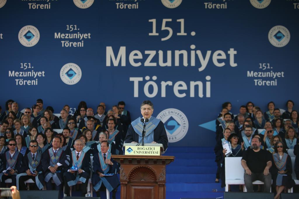 Boğaziçi Üniversitesi Rektörü Prof. Dr. Mehmed Özkan, 151. Mezuniyet Töreni’nde yaptığı açılış konuşmasında 2018 mezunlarını geleceğe uğurlarken ‘’Boğaziçili kimliği’’ne vurgu yaparak şöyle seslendi: “Artık tescilli birer Boğaziçilisiniz. Aldığınız bu diplomalar, gösterişli birer kâğıt olmanın çok ötesinde, tek tek imzalarken büyük mutluluk duyduğum, emek dolu, çaba dolu, akıl dolu ve daha da çok güçlü duygularla bezenmiş birer hafıza olacak hepiniz için. Bu diplomalar Boğaziçi kimliğinizin çok değerli yazılı birer belgesidir hiç şüphesiz. Bir de yazılı olmayan, içinize işleyen, hayat boyu artık sizi bırakmayacak bir Boğaziçi kimliğiniz daha var ki bu kimlik sizi dahi şaşırtacak çoğu kez. Bu kimlik fark etmeseniz de sadece çevrenizdekileri değil, kendinizi de sorgulatacak çoğu kere... Bu kimlik nedeniyle sorumluluklarınız artarak ağırlaşacak. Ama bu kimlikle cesaretiniz asla kırılmayacak. Profesyonel hayatınızda tarafların tarafı olmadığınız, mensubu olduğunuz kurumun kurumsallaşmasını, yücelmesini sağlayan yaklaşımınız ortaya çıktığında “işte bir Boğaziçili” dedirtecek yine bu kimliğiniz olacaktır. Çoğu zaman aykırı ama doğru olanı sizden duyacaklar. Güçlü, bilgiye dayalı özgüveniniz, eşitlikçi ve adaletli yaklaşımınız sizi kalabalıkları izleyen bireyler değil, yalnız kalmayı göze almış liderler yapacak günü geldiğinde. Bulunduğunuz kurumu ve hatta dünyanın neresinde olursanız olun içinde bulunduğunuz ülkeyi bir sonraki başarıya taşıyan sizler olacaksınız. İnandığım bir şey daha var ki, o da bir Boğaziçili kilometrelerce uzakta da olsa, aradan yıllar geçse de artık bir Boğaziçilidir ve üniversitesiyle ayrılmaz bir bütün haline gelmiştir. Bundan böyle Boğaziçi’nin derdi sizin derdiniz, başarıları sizin onurunuz olacak. Üniversitenizi yalnız bırakmayacağınıza inanıyor ve yarınları şekillendiren Boğaziçi’nizi yeni başarılara birlikte taşıyacağımıza güveniyoruz’’.