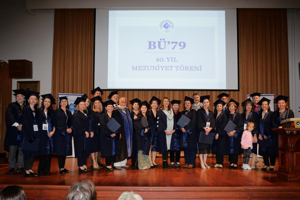 Mezuniyet töreninde mezunlar adına İşletme bölümü mezunu Prof. Dr. Jale Sözer Oran, Makine Mühendisliği Yüksek Lisans mezunu Cengiz Torun ve Ön Lisans Yöneticilik mezunu Atilla Kalkay birer konuşma yaparak Boğaziçi Üniversitesi mezunu olmaktan duydukları gurur ve mutluluğu ifade ettiler. 1979 yılı mezunlarının arasında ayrıca Boğaziçi Üniversitesi öğretim üyeleri Prof. Dr. İrem Nuhoğlu ve Prof. Dr. Neşe Bilgin de yer aldı.