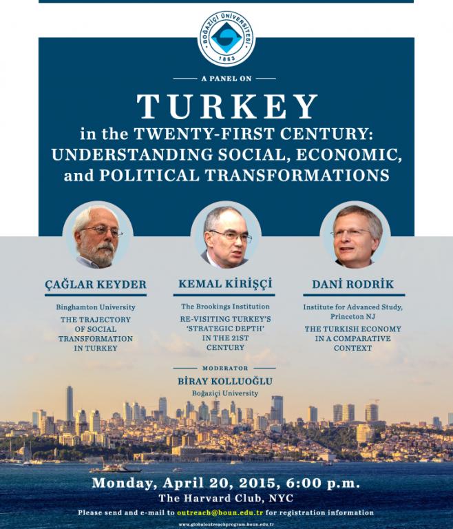 Panelde Çağlar Keyder “Türkiye’de Toplumsal Dönüşümler”, Kemal Kirişçi “21. Yüzyılda Türkiye’nin Stratejik Derinliğini Yeniden Değerlendirmek” ve Dani Rodrik “Karşılaştırmalı Perspektif İçerisinde Türkiye Ekonomisi” başlıklı konuşmalar yapacaklar.