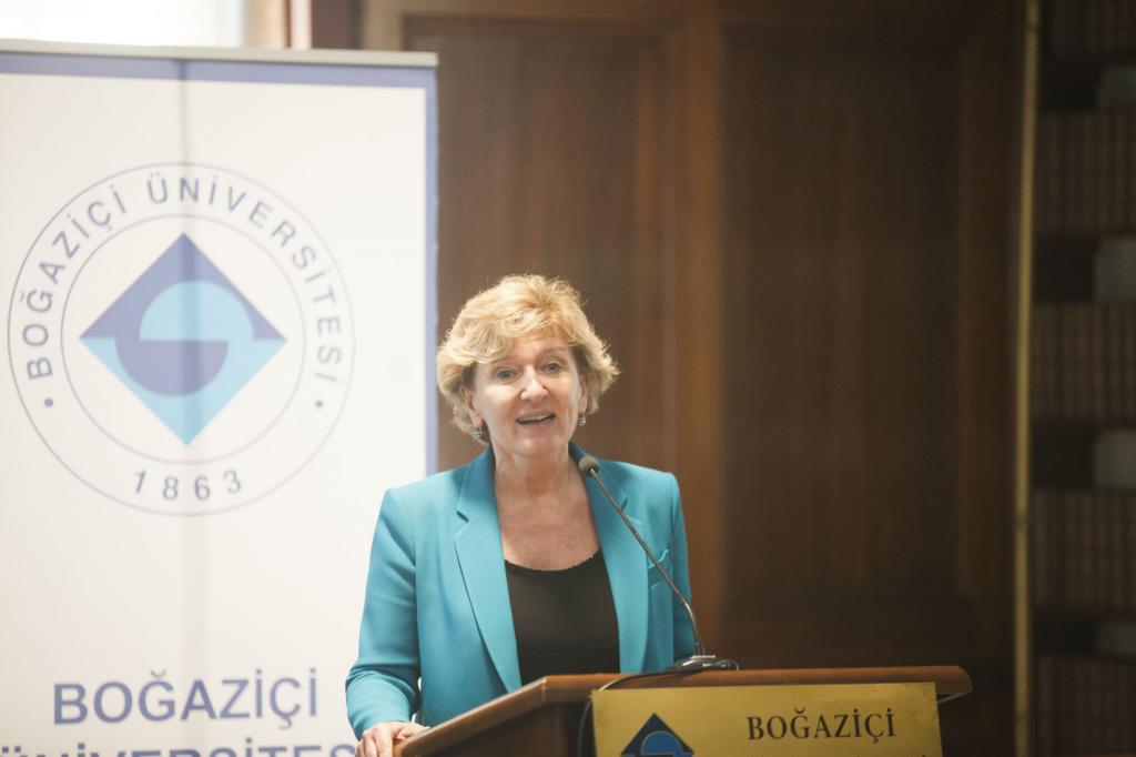 Ayfer Hortaçsu’nun moderatörlüğünü üstlendiği toplantının açılışında söz alan Mehmet Yaltır, Robert Kolej hocalarının Boğaziçi’ne taşıdığı değerlerin evrensel niteliği üzerinde durarak bu toplantı dizisinin Boğaziçi’nin temel taşlarını oluşturan değerlerin yeni nesillere aktarımında taşıdığı öneme değindi.