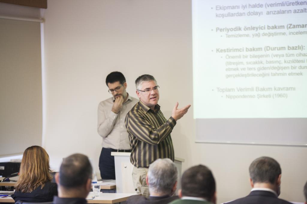 Danışma Kurulu’nun toplantısında Yrd. Doç. Dr. Gönenç Yücel, Prof. Dr. Ümit Bilge, Doç. Dr. Taylan Cemgil, Doç. Dr. Mustafa Gökçe Baydoğan, Prof. Dr. Necati Aras ve Doç. Dr. Burak Acar Endüstri 4.0 çerçevesinde Kestirimci Bakım konusunu çeşitli yönleri ile ele alarak yaptıkları çalışmaları ve projeleri paylaştılar. Sanayi şirketlerinde kestirimci bakım uygulamalarının başlatılması için gerekli yol haritası odağa konuldu. Projelerin doğru tanımlanması, amacın tespit edilerek buna uygun kullanım senaryosunun kurgulanması, performans ölçütlerinin ve beklenen faydanın belirlenmesi, bu aşamalarda simülasyona dayalı analizlerin yeri irdelendi. Özellikle kestirimci bakımda hazır çözümlerle yola çıkılsa bile her hastaya aynı ilaç ve dozun etki etmemesi gibi duruma özel uygulama yaklaşımı ile projelerin sürdürülmesi gerektiği vurgulandı. Projelerin başlatılmasında karşılaşılabilecek sorunlar tartışıldı. Bosch, Netaş, BSHG, Arçelik, Festo, Tüpraş, Petkim, Turasgas gibi sanayi şirketleri ile Accenture, IBM, Microsoft, Intel, Fourone gibi teknoloji şirketlerinden oluşan Platform Danışma Kurulu’nun pilot projelerin belirlenmesi için çalıştay takvimi oluşturulmasına karar verildi.