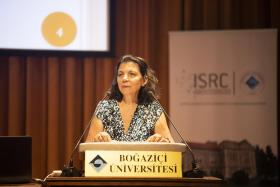 Albert Long Hall Büyük Toplantı Salonu’nda düzenlenen tanıtım toplantısının açılış konuşmasını yapan eVET Projesi Boğaziçi Üniversitesi Koordinatörü Prof. Dr. Birgül Kutlu Bayraktar, globalleşme sonucunda mesleklere bakış açısının değiştiğini ve meslek eğitimlerinin ön plana çıktığını belirtti. “eVET” projesinin mesleki öğrenim ve gelişim anlamında Avrupa merkezli kurum ve firma ortaklarının kurulmasını destekleyecek bir portal ihtiyacından doğduğunu aktaran Bayraktar, “eVET” platformunun bu ortaklıklar adına büyük bir potansiyele dönüşeceğini dile getirdi. “eVET”in temel mesleki eğitimlerine devam eden kişiler için yurtdışı eğitim fırsatlarını arttırmayı ve eğitim-öğretimden iş hayatına geçiş yapabilmeleri için ihtiyaç duydukları becerileri kazandırmayı; mesleki eğitim personelinin ise, iş pratiği bilgisi elde etme ve güncelleme veya pedagojik becerilerini arttırmasını amaçladığını aktaran Bayraktar; portalin tasarımları ve projenin idari süreçlerinde emeği geçenlere teşekkürlerini sunarak konuşmasını tamamladı.