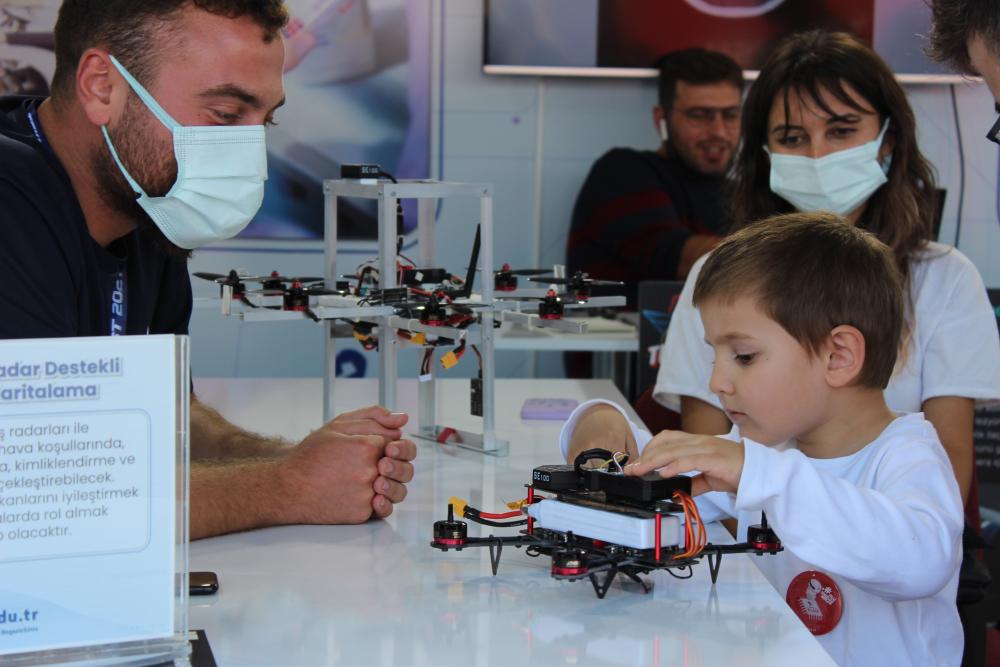Boğaziçi Üniversitesi’nin sergide her yaş ve alandan katılımcının ilgisini çekmeyi başaran çalışmalardan biri TÜBİTAK 1001 Bilimsel ve Teknolojik Araştırma Projelerini Destekleme Programı’na dahil olan “Uçan Robotlar için Radar Destekli Veri Toplama ve Haritalama” projesi oldu. Elektrik-Elektronik Mühendisliği Bölümü Öğretim Üyesi Doç. Dr. Ahmet Öncü’nin liderliğinde dördü yüksek lisans öğrencisi beş kişilik ekibin çalışmalarıyla hayata geçen proje sayesinde zorlu hava şartlarına mevcutlara göre çok daha dayanıklı insansız hava aracı geliştirildi. Küçük ölçekte prototipinin alanda sergilendiği projeyi Doç. Dr. Ahmet Öncü şöyle anlattı: