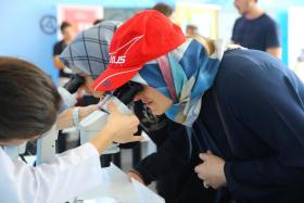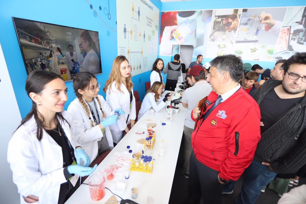 Ziyaretçilerin yoğun ilgi gösterdiği Boğaziçi Üniversitesi stantlarından bir diğeri de Moleküler Biyoloji ve Genetik Bölümü standı oldu. Çilek ve kivi hücrelerinin DNA’sını ayırma, mutasyona uğramış meyve sineklerinin mutasyona uğramadan önceki ve sonraki halini ve kan hücrelerini mikroskopta inceleme fırsatı sunan Moleküler Biyoloji ve Genetik Bölümü standı, özellikle gençler tarafından ilgiyle karşılandı. Gençlerin bilime olan merakına tanık olmaktan çok mutlu olduğunu ifade eden Boğaziçi Üniversitesi Moleküler Biyoloji ve Genetik Bölümü öğretim üyesi Prof. Dr. Nesrin Özören, “Burada yaptığımız DNA ayrıştırma deneylerine katılan öğrencilerin, öğretmenlerin gözleri parlıyor. Burada olmak bizim için bu açıdan mutluluk verici,” ifadelerini kullandı.