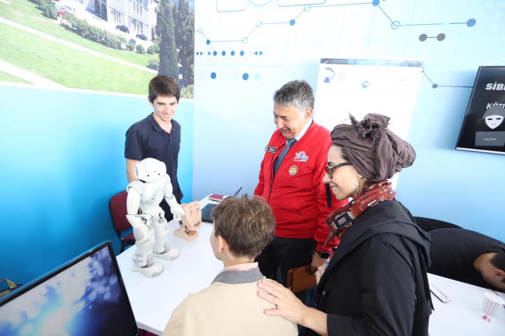 Stant içerisinde ilgi çeken bir başka proje ise Boğaziçi Üniversitesi Bilgisayar Mühendisliği Bölümü öğretim üyesi Prof. Dr. Levent Akın liderliğinde Boğaziçi Üniversitesi’nde geliştirilen insansı robot oldu. Bilgisayar Mühendisliği Bölümü öğrencisi olan ve proje ekibinde yer alan Rahmetullah Varol, katılımcılara yapılan robot çalışmaları hakkında bilgi verdiklerini özellikle gençlerin ilgisiyle karşılaştıklarını aktardı. Boğaziçi Üniversitesi’nde yapay zekâ laboratuvarı bünyesinde çalıştıklarını belirten Varol, çalışmalarının daha çok insanlarla robotların etkileşimi üzerine olduğunu örneğin rehabilitasyon robotları ile insanların spor yaparken yapmaları gereken hareketleri robotlar yardımıyla öğrenip yaptıkları hareketlere de göre de robotların geri dönüş sağlaması üzerine çalıştıklarını aktardı. Varol, Boğaziçi Üniversitesi’nde insansı robotlar sayesinde soru-cevap şeklindeki uygulamalarda insanlarla robotların doğal bir etkileşim kurma yolları hakkında da araştırma yapıldığını belirtti.