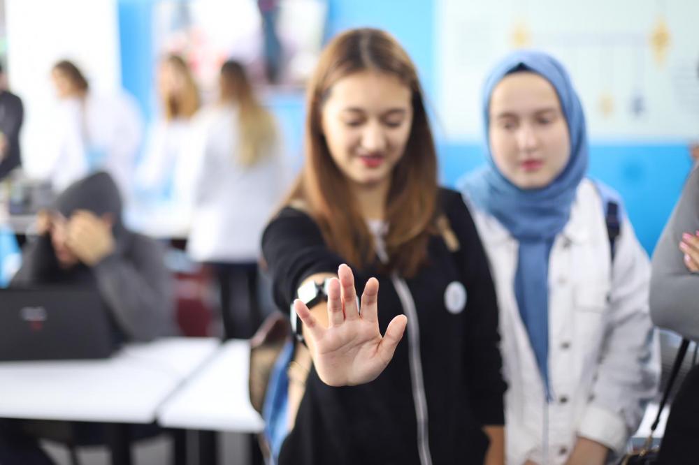 “Ben Sıla. Çamlıca Kız Anadolu İmam Hatip Lisesi’nde 11. sınıf öğrencisiyim. Buradaki projelerin hepsi etkileyici. Her kesime hitap eden çeşitli ürünler, deneyler paylaşılıyor.”