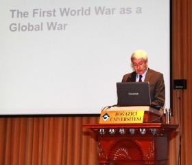 ‘’Küresel Bir Perspektiften 1. Dünya Savaşı’’ başlığını taşıyan konferansa Boğaziçi Üniversitesi Rektörü Prof. Dr. Gülay Barbarosoğlu, Dr. Thomas Suermann (Fritz Thyssen Stiftung) ve Prof. Dr. Raoul Motika (Orient Institut İstanbul) katılırken; Free University Berlin öğretim üyesi Prof. Oliver Janz ‘’Küresel Bir Perspektiften Birinci Dünya Savaşı’’ başlıklı bir sunum gerçekleştirdi. Boğaziçi Üniversitesi öğretim üyesi Dr. Vangelis Kechriotis’in moderatörlüğünü üstlendiği konferansın açılış konuşmasını ise Boğaziçi Üniversitesi öğretim üyesi Prof. Dr. Şevket Pamuk yaptı.