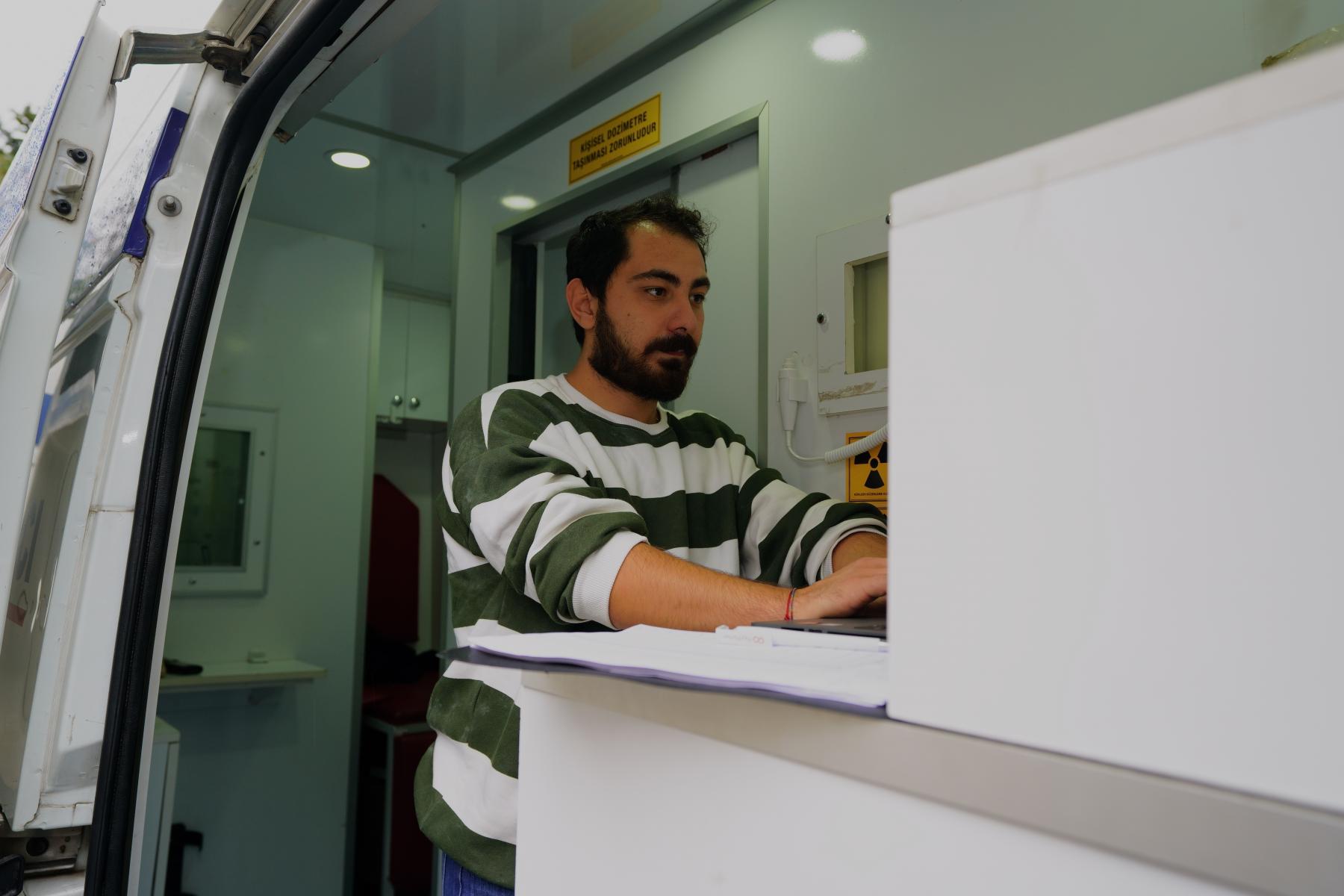 Tam donanımlı mobil İş Sağlığı ve Güvenliği (İSG) aracı ile gerçekleştirilen sağlık taraması kapsamında akciğer grafisi çekimi, solunum, işitme, görme ve kan testleri gerçekleştirilerek işçi statüsündek personelin sağlık durumlarına ilişkin tespit ve önerilerde bulunuldu.