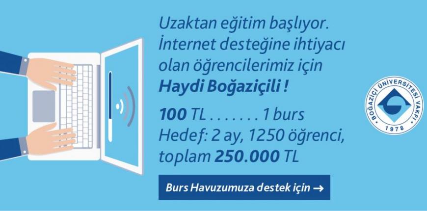 Koronavirüs salgını nedeniyle tatil edilen üniversiteler uzaktan eğitime ve çevrim içi yöntemlere başvururken imkânı olmayan öğrenciler için Boğaziçi Üniversitesi, öğrenci burslarına bir ekleme yaparak, internet destek bursu vermeye başladı.