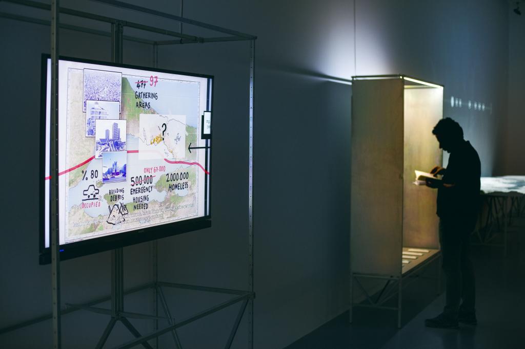 ‘’Dünya Okulu’’nda Boğaziçi Üniversitesi İnşaat Mühendisliği öğretim üyesi Emre Otay, Sosyoloji Bölümü öğretim üyesi Ayfer Bartu Candan, MEF Üniversitesi Mimarlık Fakültesi hocaları Orak Göktaş ve Sevince Bayrak’ın birlikte yürüttükleri ve 17 mühendislik, 10 sosyoloji ve 17 mimarlık öğrencisinin katildigi bir ders baglaminda tasarlanan, deprem sonrası Haliç’te geçici barınma alanı sağlayacak olan yüzer evler projesi sergileniyor. Galeri Arter’in giriş katında yer alan ve ‘’Suda Umut’’ (Hope on Water) adını taşıyan videoda İstanbul’da bir deprem anında insanların nerede barınacağı sorusuna bir yanıt aranıyor.